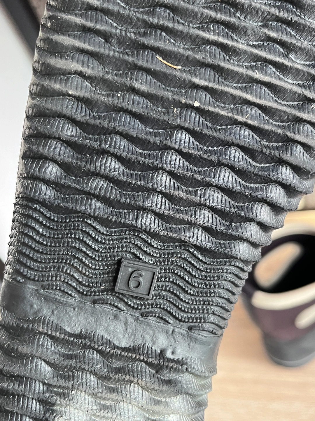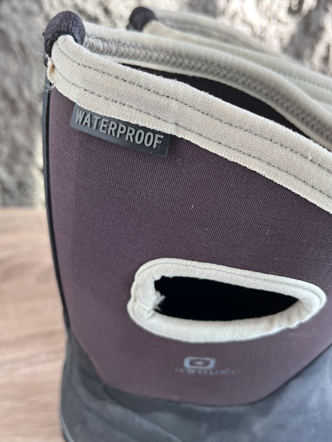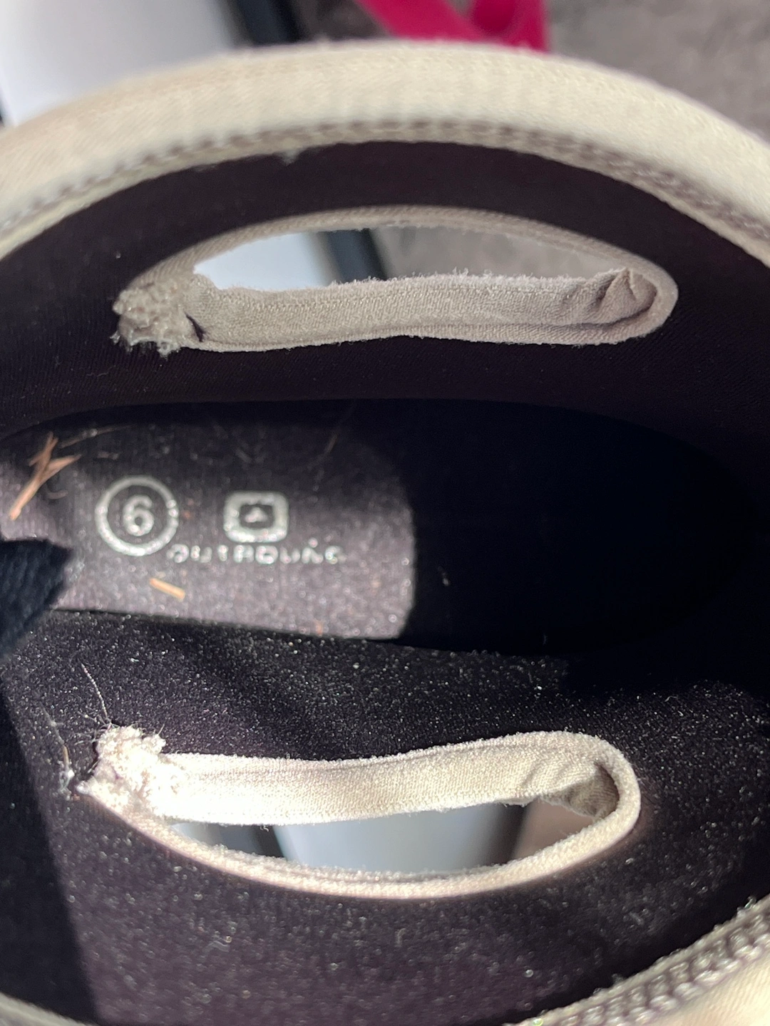 Black and brown winter boots. They have a fleece lining. They are in good condition.