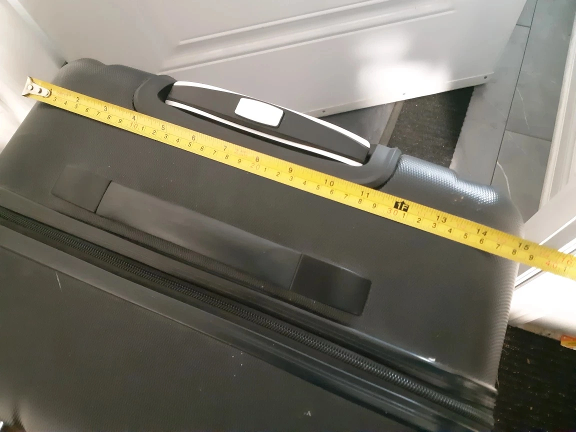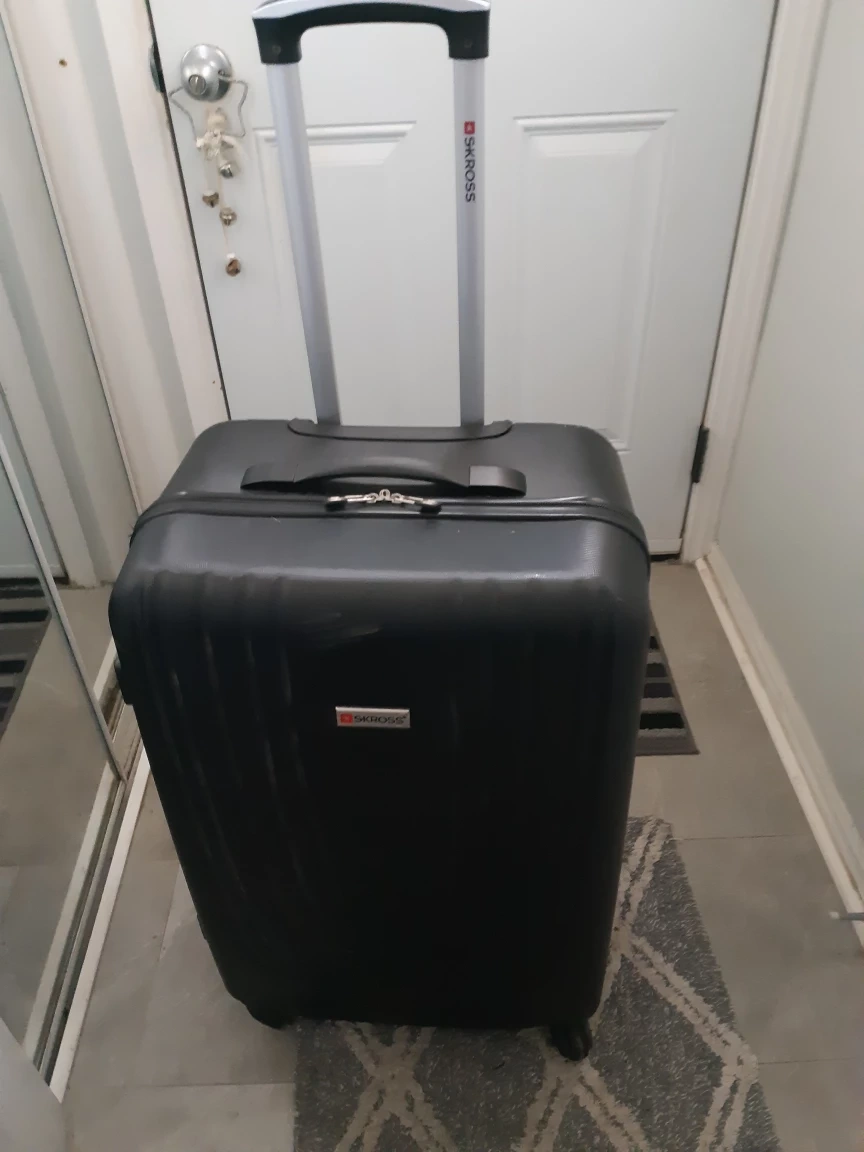 26 Inch Checked Luggage Hard Shell Suitcase with 4 spinner wheels TSA Approved Luggage . Mid size Suitcase 15lx10wx26h it's the size up from a carry on. Interlocking zippers so you can add a lock, sturdy and has extendable handel . Used once . Need the space .