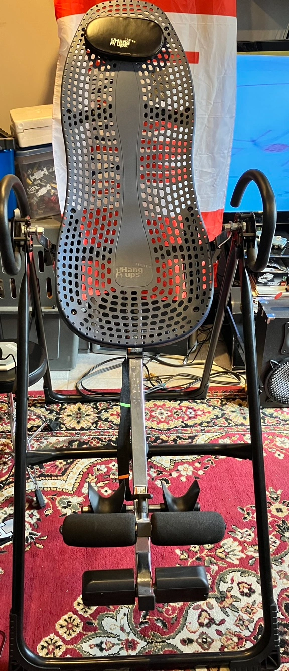 This is an inversion table that is designed to help stretch and decompress your spine. It comes with a headrest and foot straps. The table is in good condition and has been used only a few times.