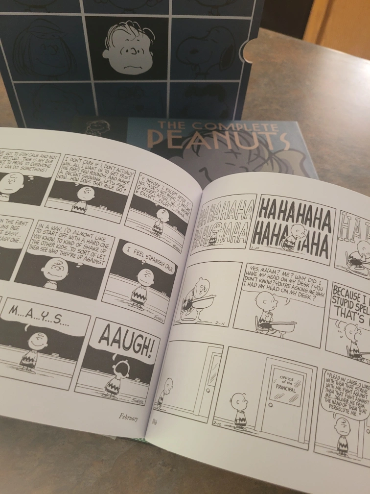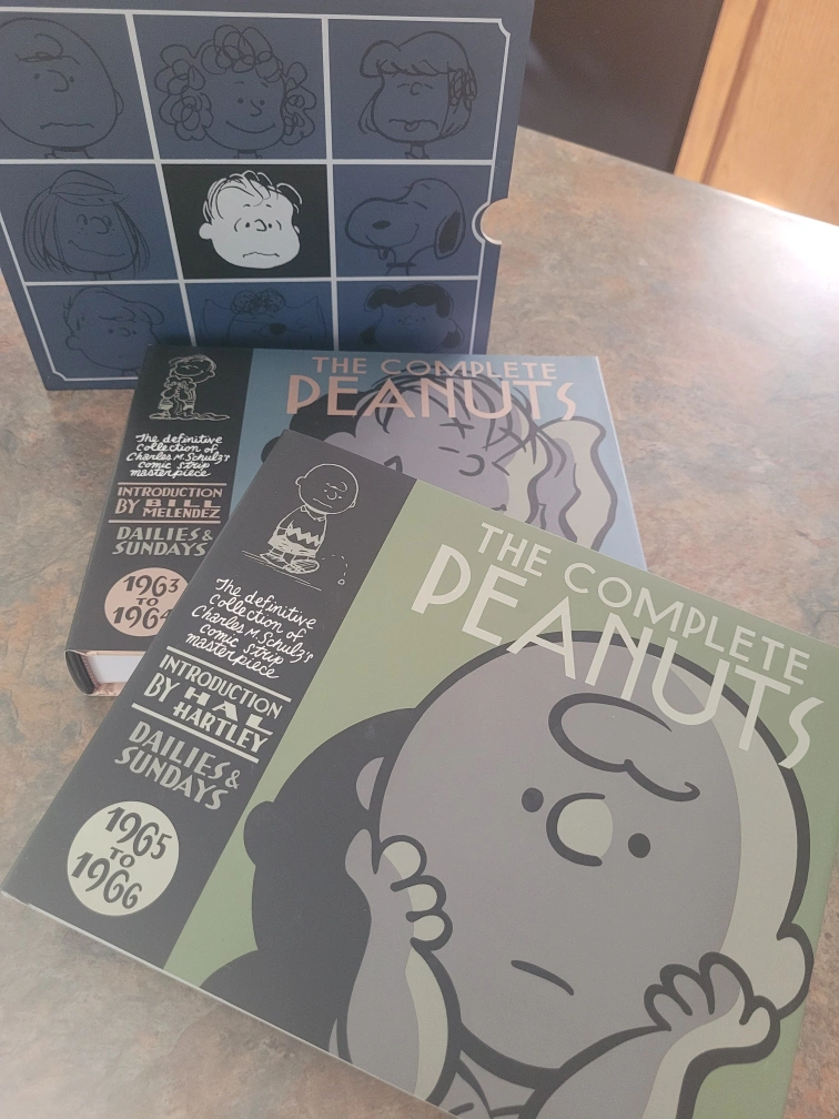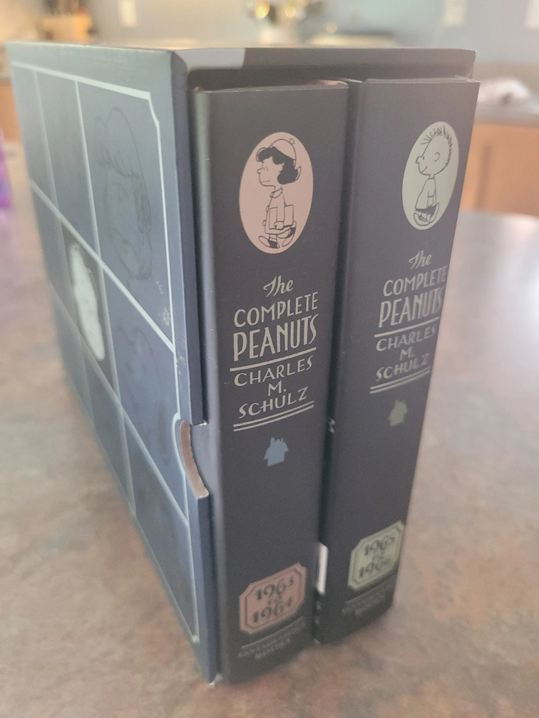 A two volume set of The Complete Peanuts, volume 10, covering the years 1963-1964 and volume 11, covering the years 1965-1966. The only thing missing is the wrapping paper! This was an accidental duplicate purchase.