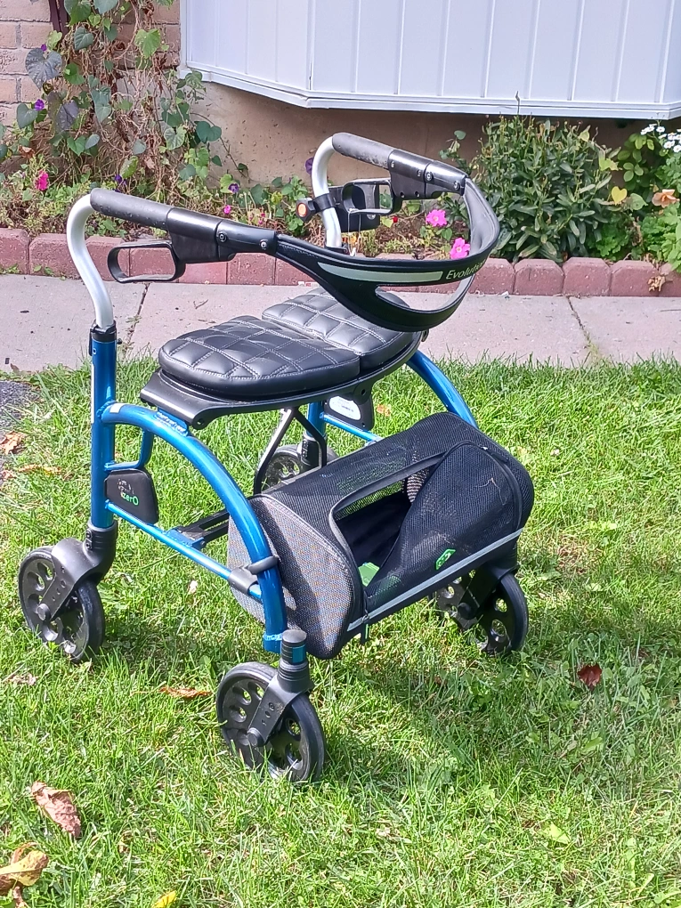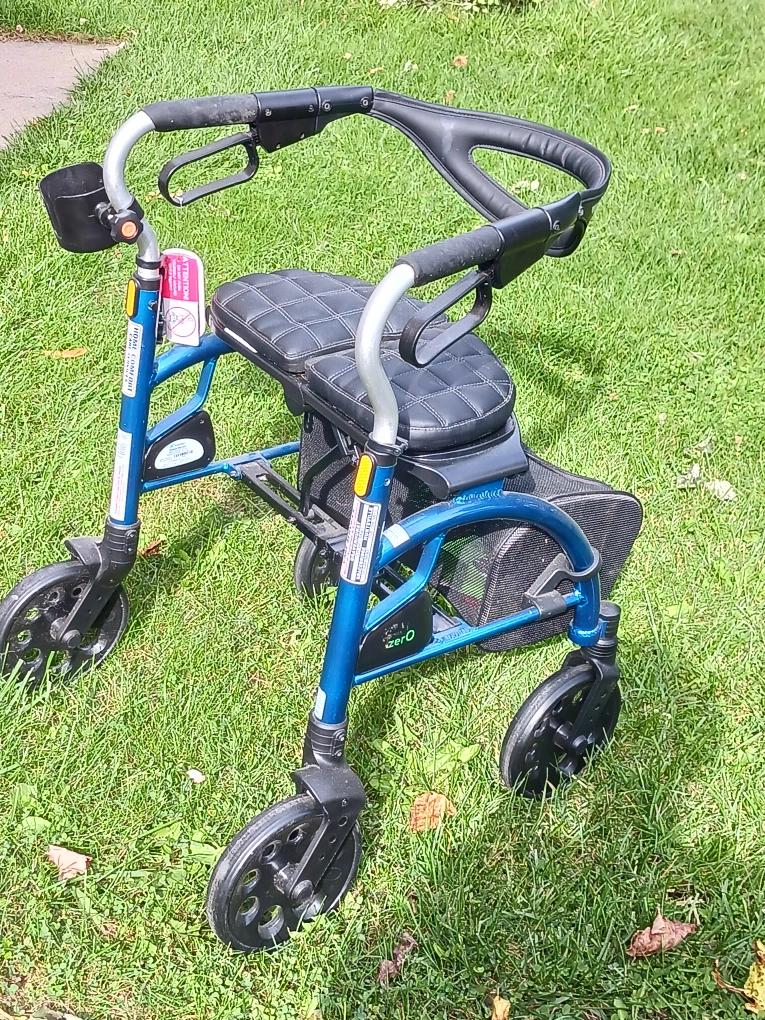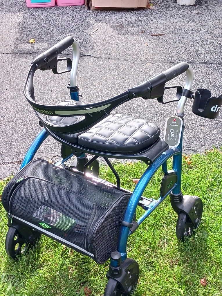Blue Drive Medical Zero-Turn walker with seat, cup holder and basket. Only used for a short while. like new condition. $500.00 plus new.