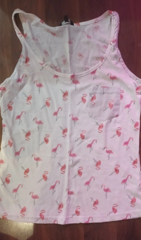 Women's tank top with a pink flamingo print.