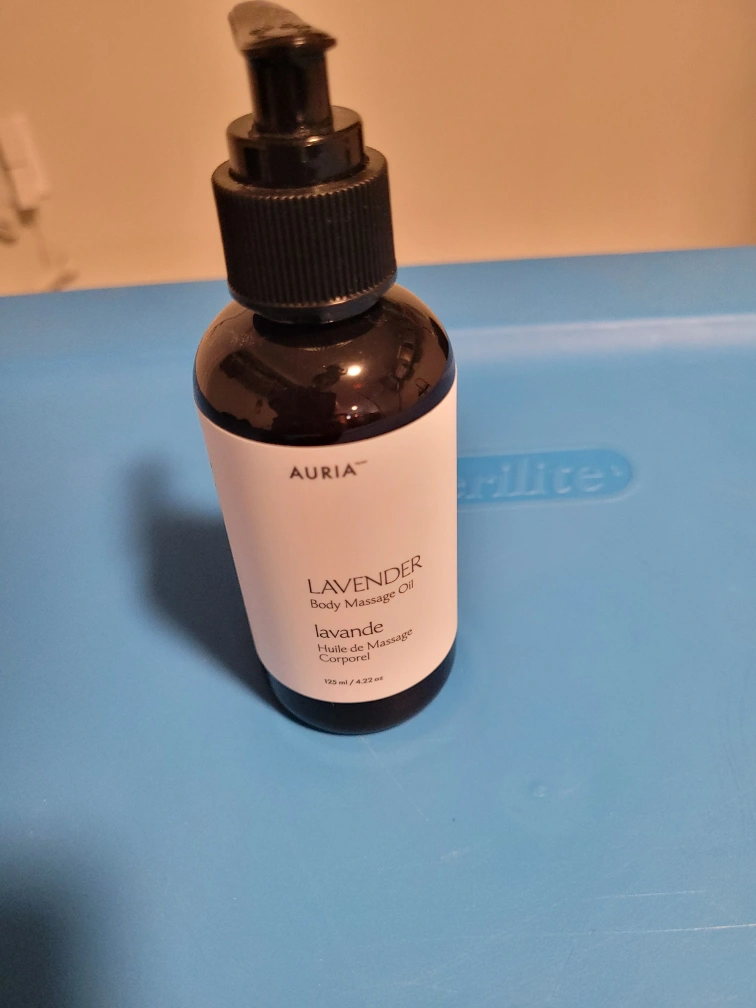 125 ml bottle of Auria Lavender Body Massage Oil. A luxurious body massage oil formulated with sweet almond, grapeseed, and jojoba oil.