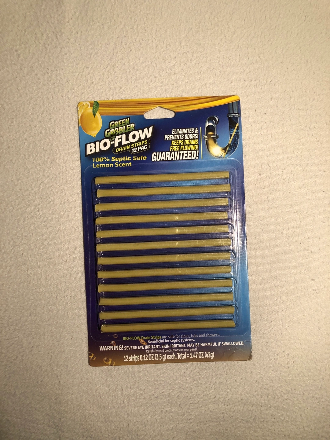 12 pack of drain strips to help keep your drains free flowing.