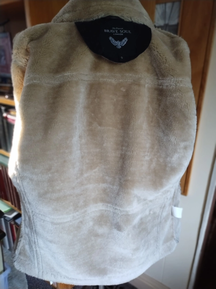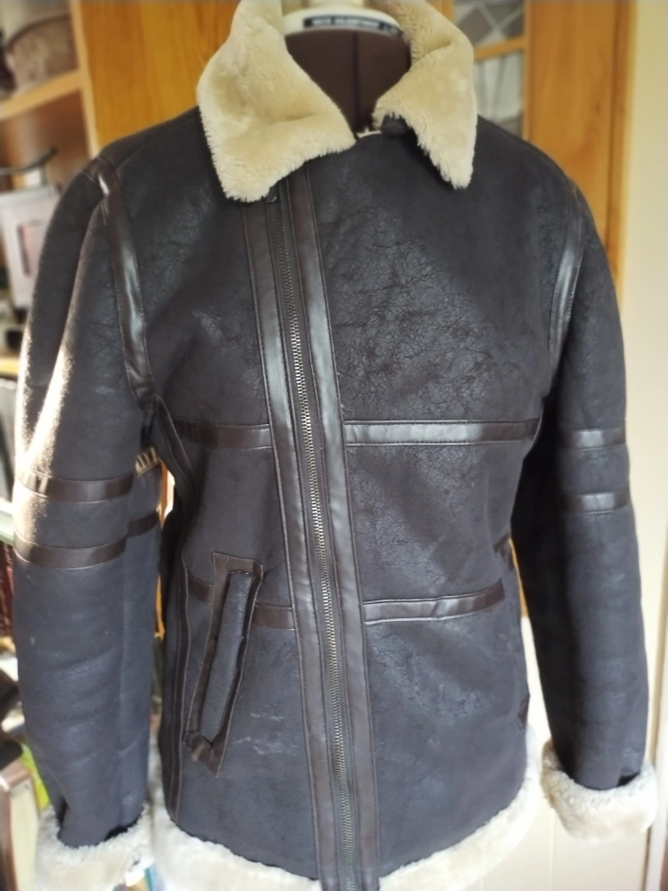 Looks so real but is faux shearling, and leather look. Quite warm, cosy and attractive. Clean, scent free and VVG condition.