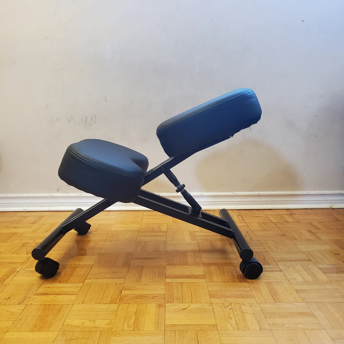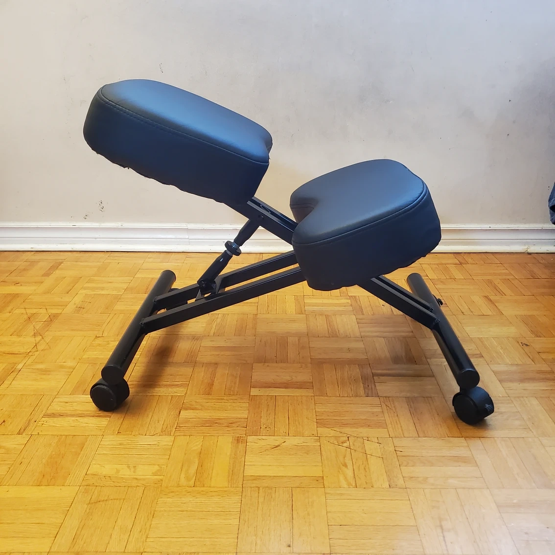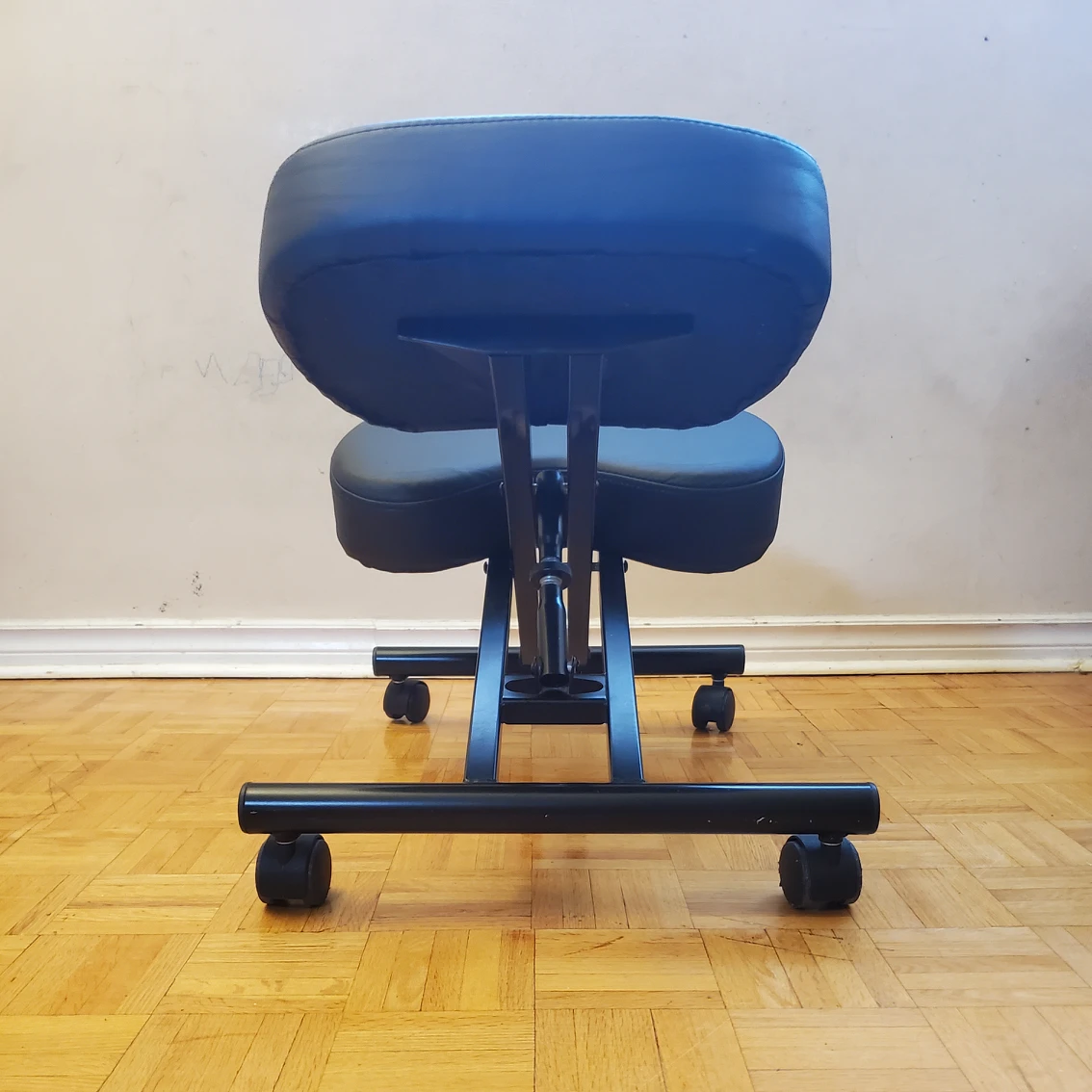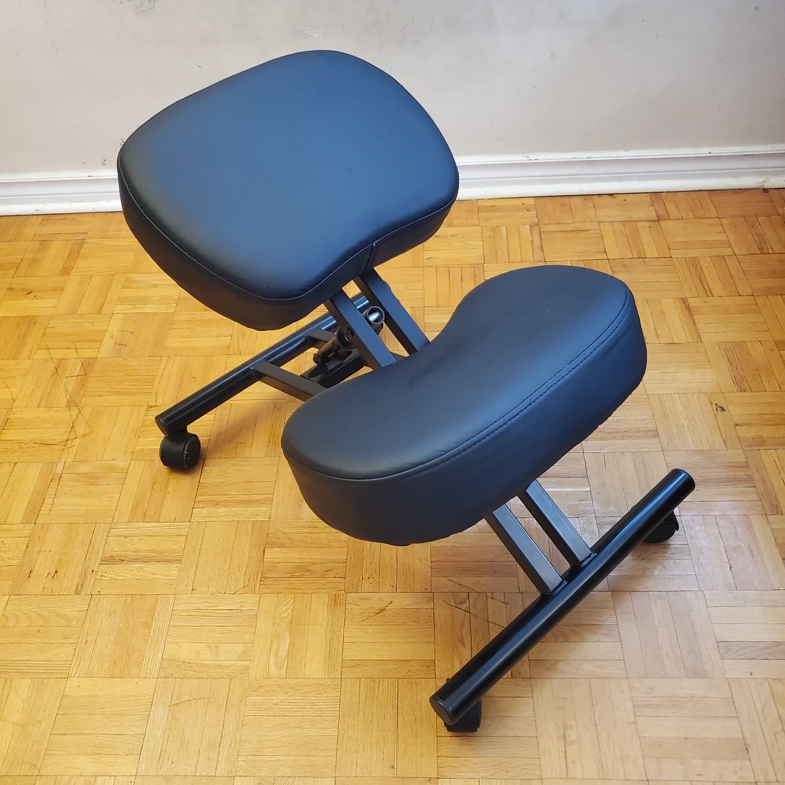 Ergonomic chair with wheels to easily move around, the brand is DRAGONN. Adjustable height, good condition barely used. The cushions are thick covered in black synthetic fabric. Good for office use.