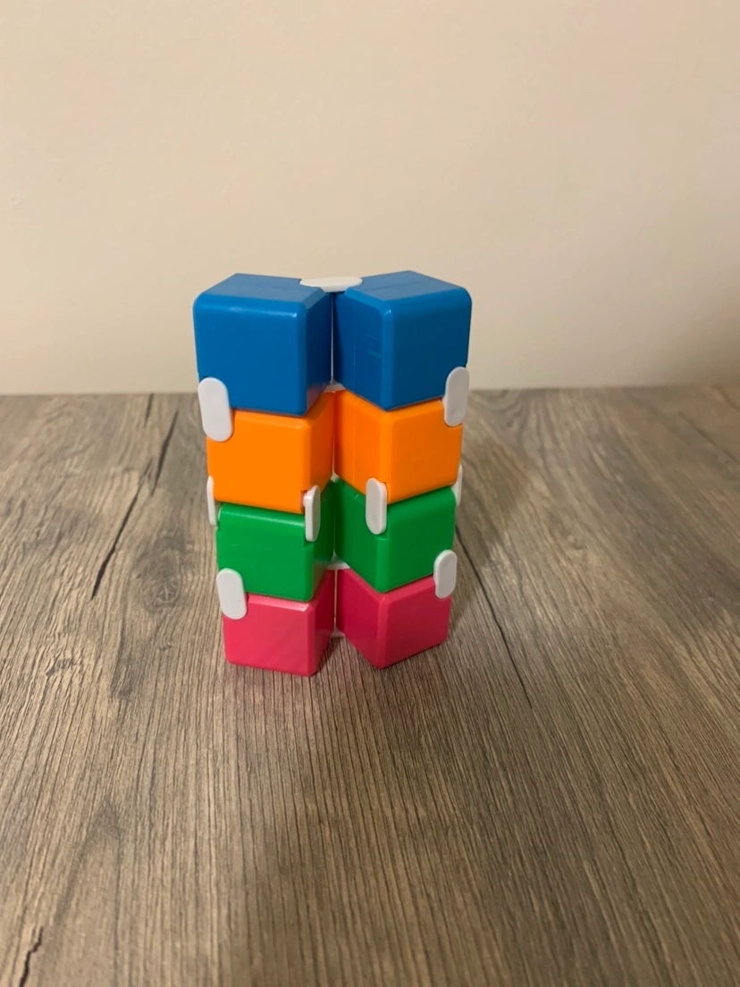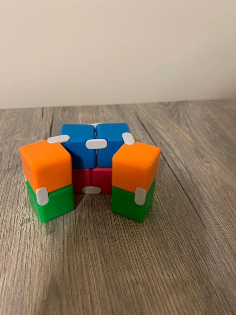 A fidget cube toy. It has six sides with different textures. It is small and portable, making it perfect for fidgeting on the go. It can be used to help reduce anxiety and stress. It is made of durable plastic and is easy to clean. DM for more info