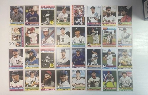 This lot consists of 96 standard-sized baseball trading cards featuring players from Major League Baseball (MLB). These original cards are made of card stock and have a vintage look, perfect for collectors and fans of the sport. Manufactured by Topps, these cards are a must-have for any baseball enthusiast looking to add to their collection. Let me know if you're interested!