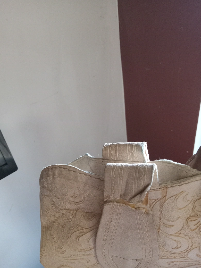 Women's white leather cowboy boots with floral embroidery and a pull-on tab at the back. They are in good condition with some wear.