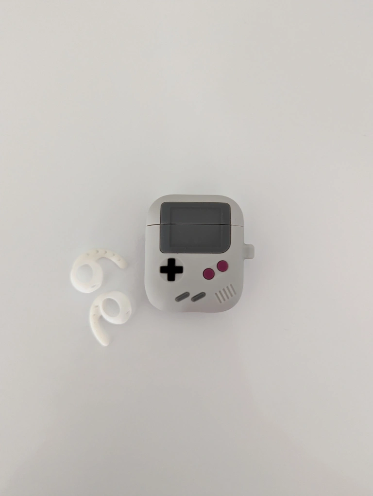 Classic Game Player Design Case compatible with AirPods 2&1 + Ear Hooks Cover Silicone Earbuds Tips for Apple AirPods 2 & 1