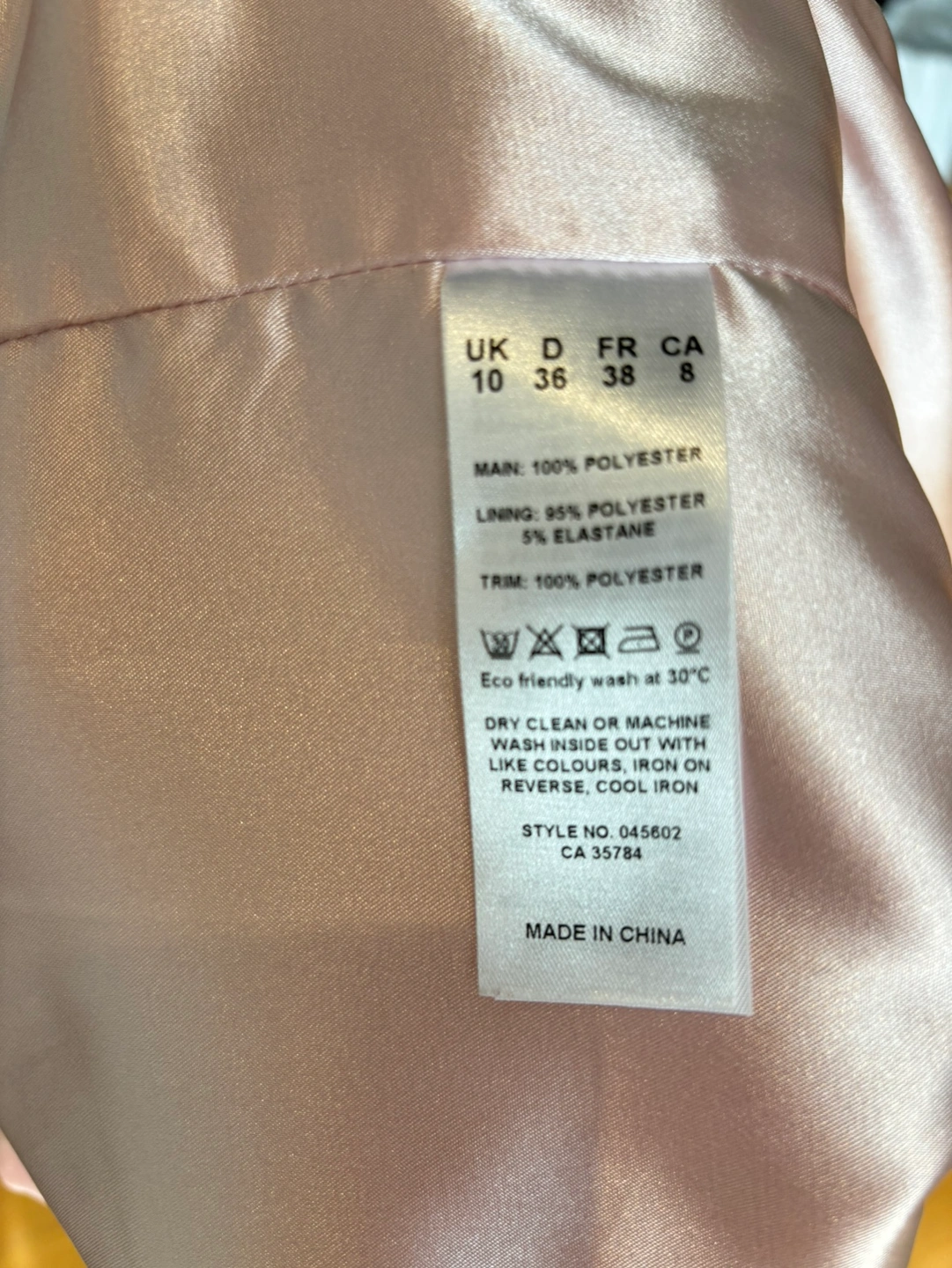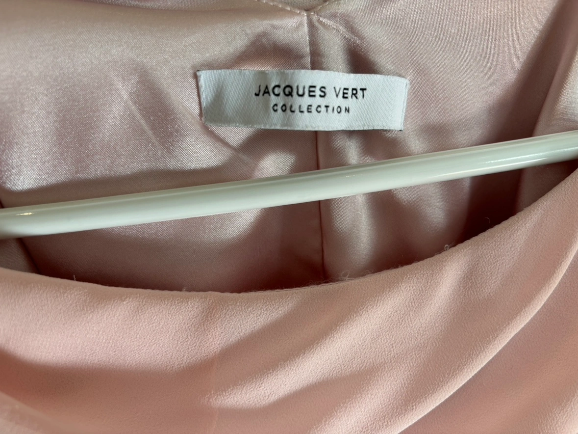 A beautiful pink Jacques Vert dress, perfect for a special occasion. The dress is sleeveless and features a lovely draped neckline. The dress has a side zipper.