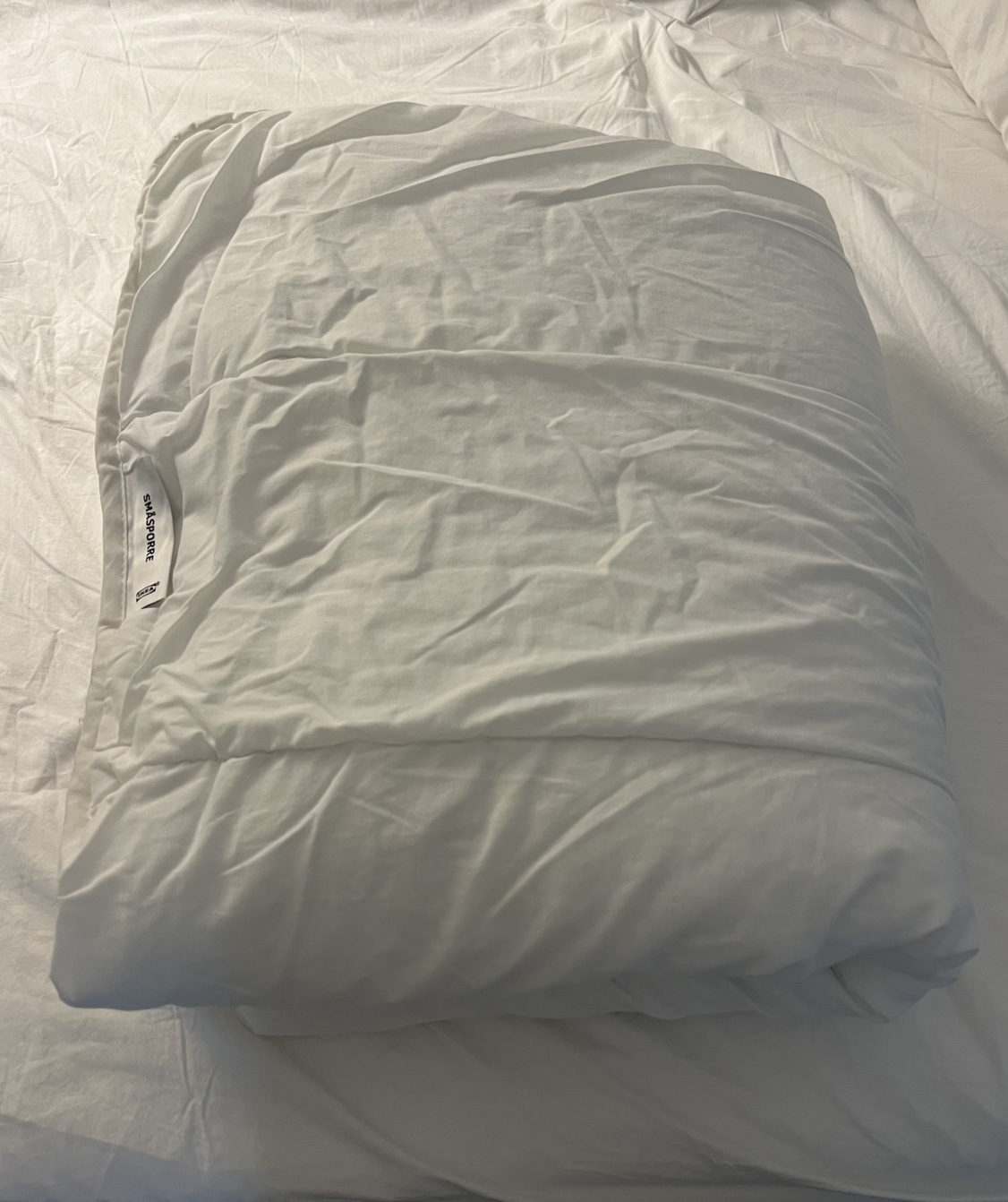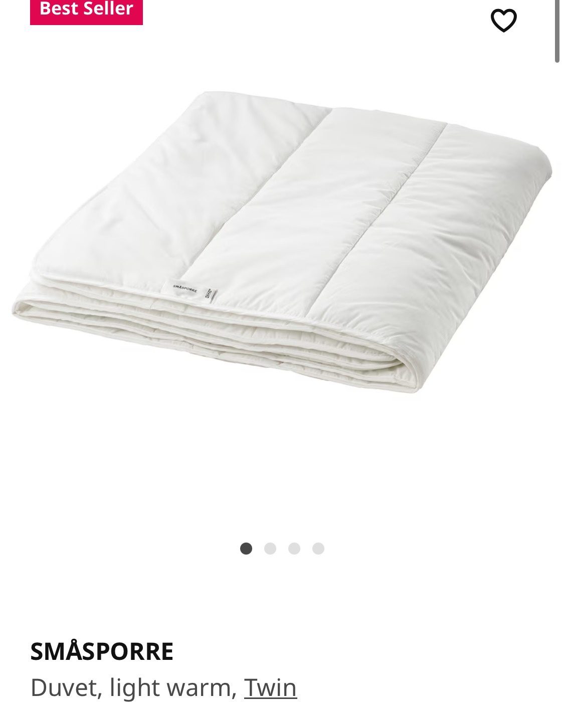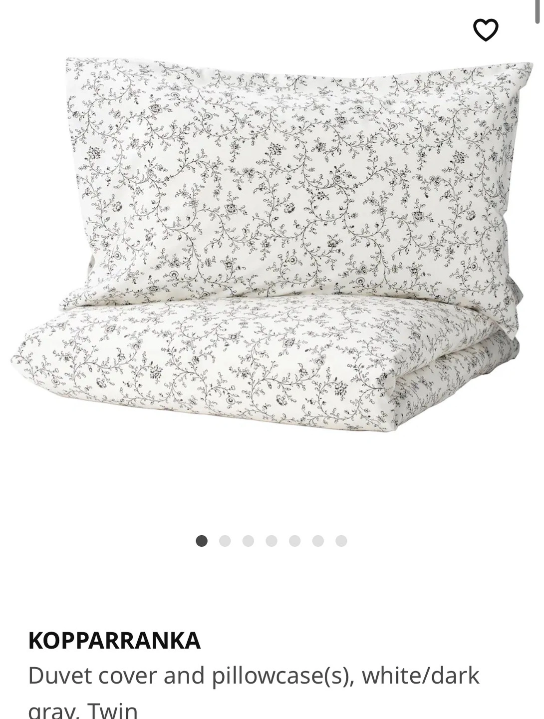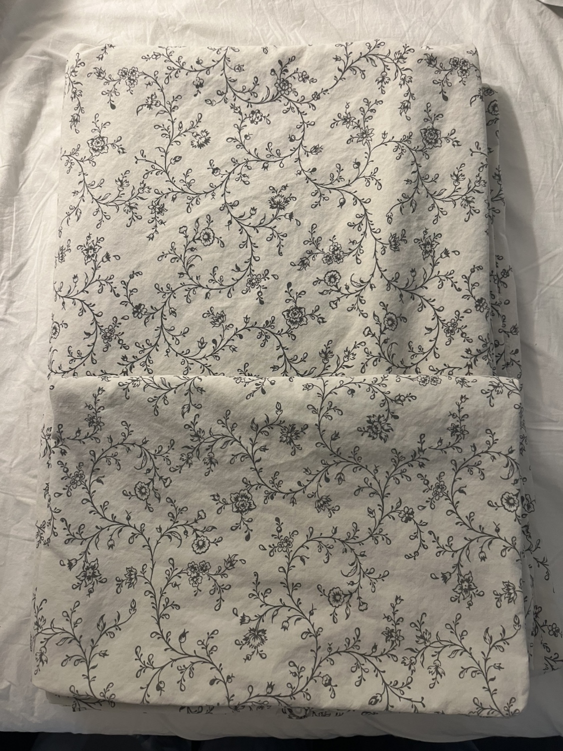 IKEA SMÅSPORRE duvet with matching KOPPARRANKA duvet cover and pillowcase. The duvet is light warm and comes in twin size. The cover has a black and white floral pattern.