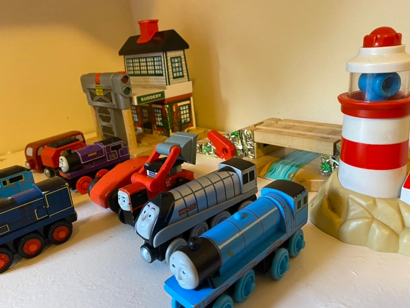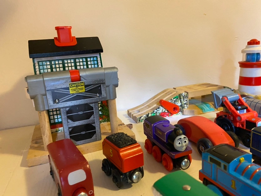 -Some cars/trains are mixed wooden and plastic.