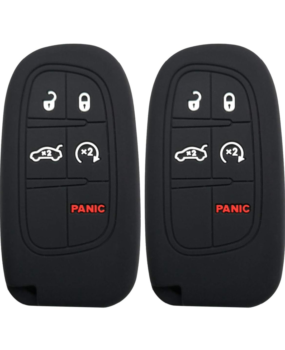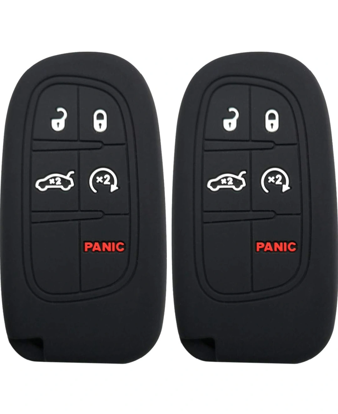 Silicone key fob cover, black. Package includes two covers. Key fob not included.