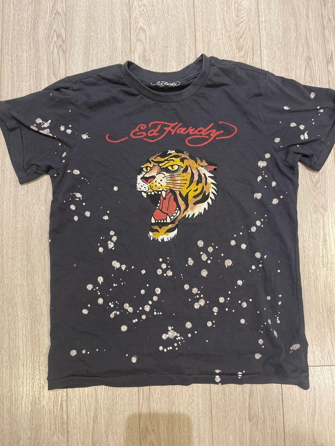 Men's size medium Ed Hardy t-shirt. Features a tiger design with a black and white splatter paint pattern. Coolest shirt ever, I bought it at a vintage store for $45 originally but never wore it after :(