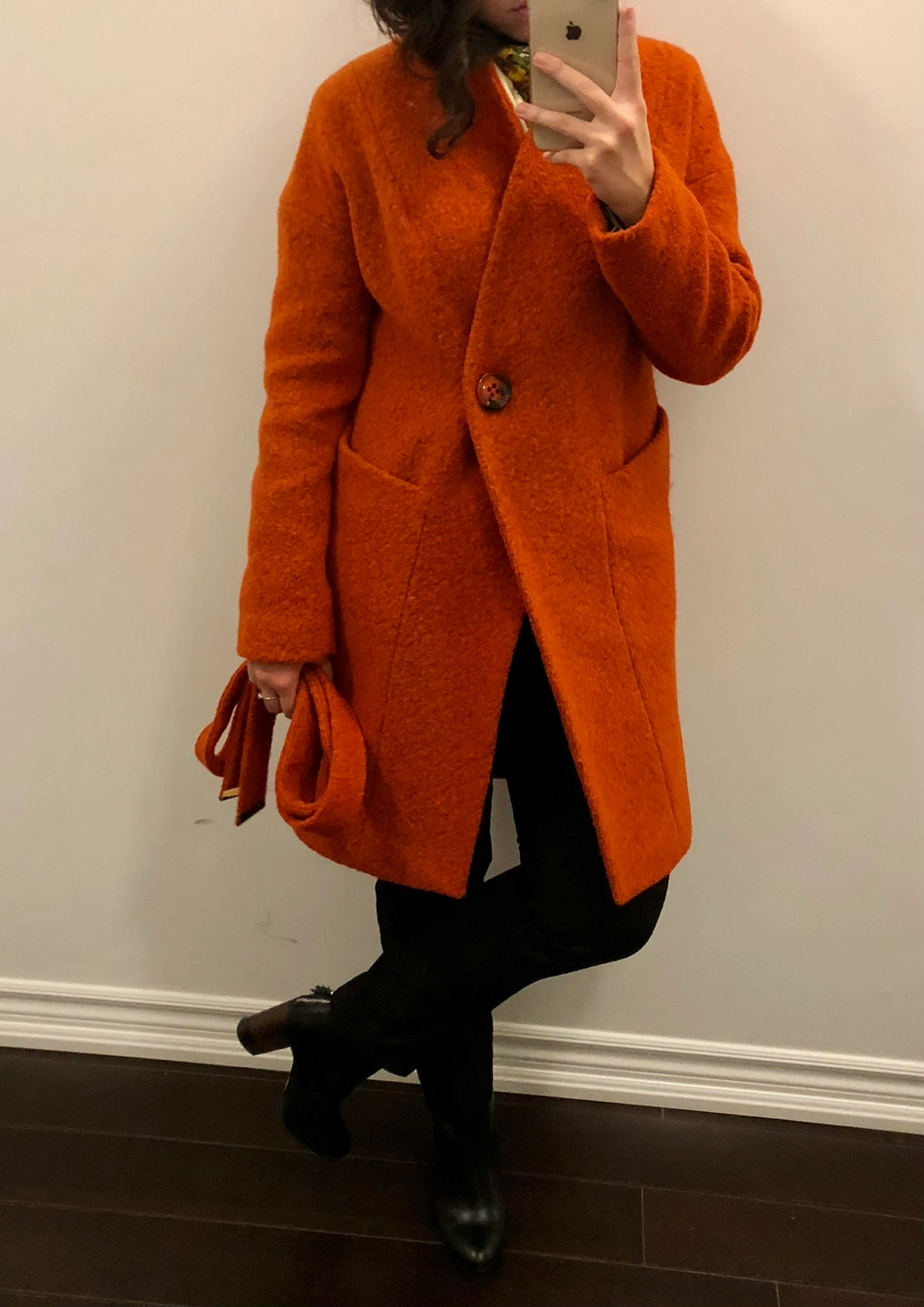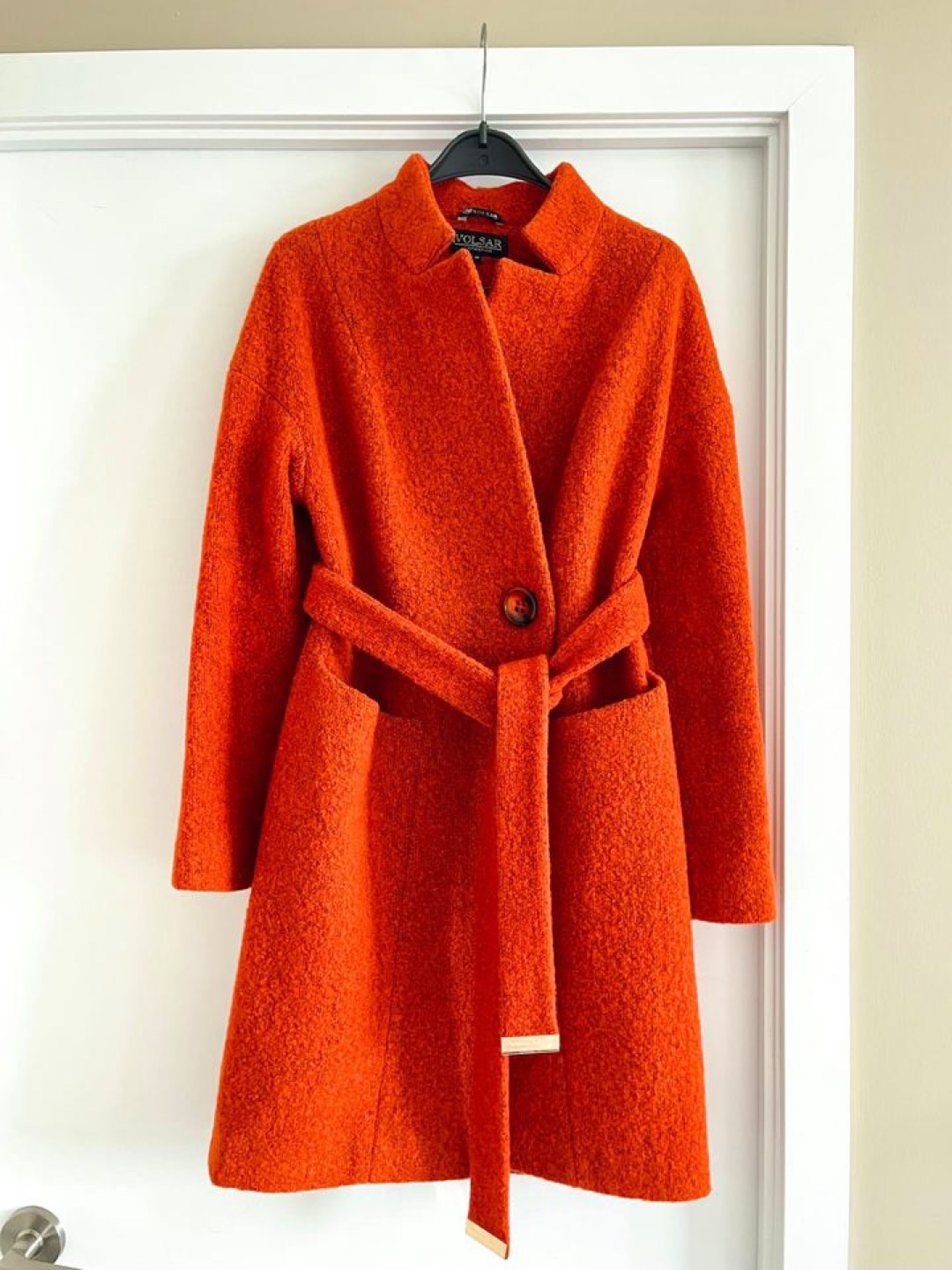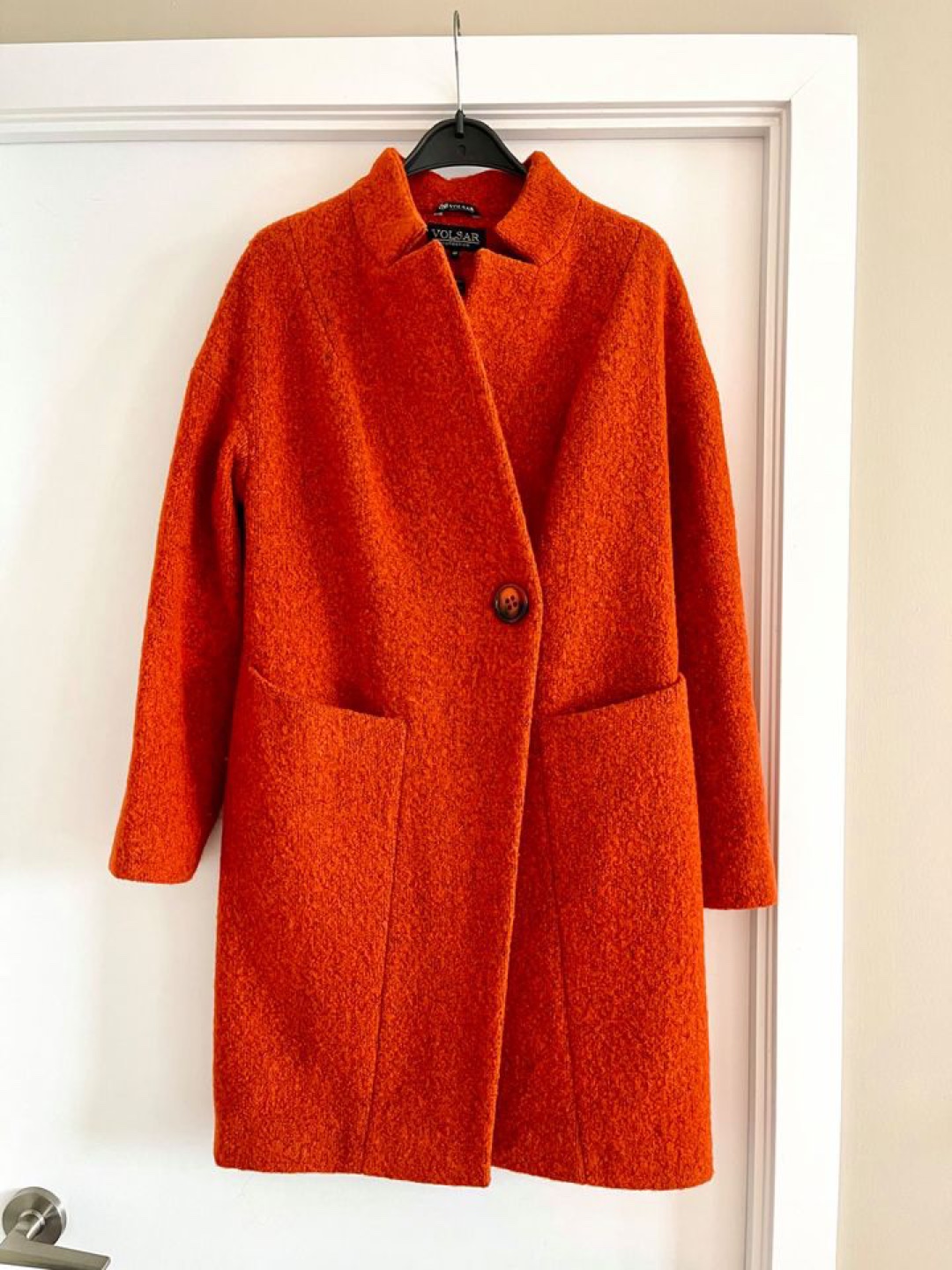 50Women’s wool coat, size XS-S 80% wool Beautiful bright terracotta color Perfect condition European brand Volsar Pickup downtown Toronto 10 Lower Jarvis by Loblaws