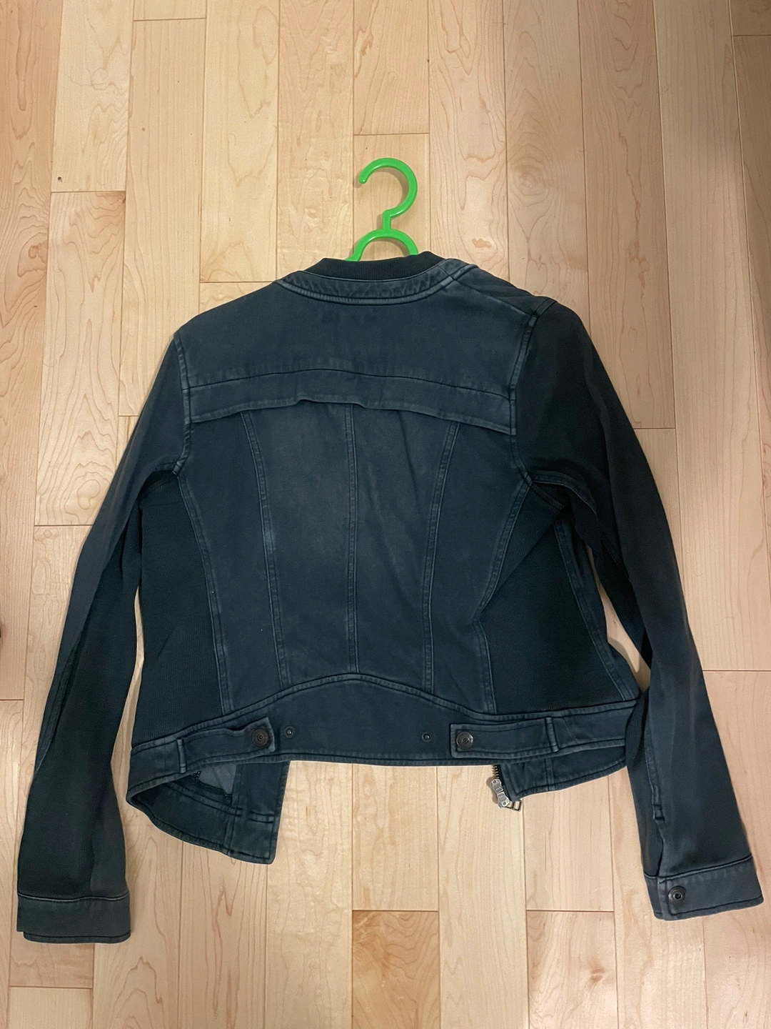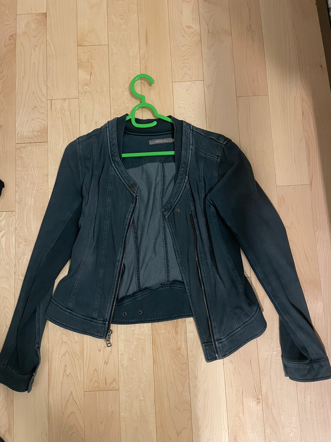 Denim coloured jacket with a zip closure. Size 36 (fits a small) Cash only please and pick up at keele subway station