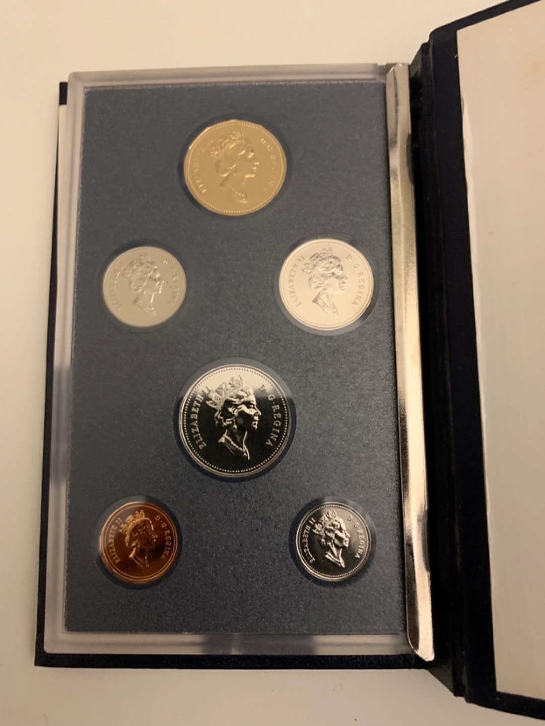 RCM Canadian Proof Set in original packaging. Includes six coins: 1 cent, 5 cents, 10 cents, 25 cents, 50 cents, and $1.