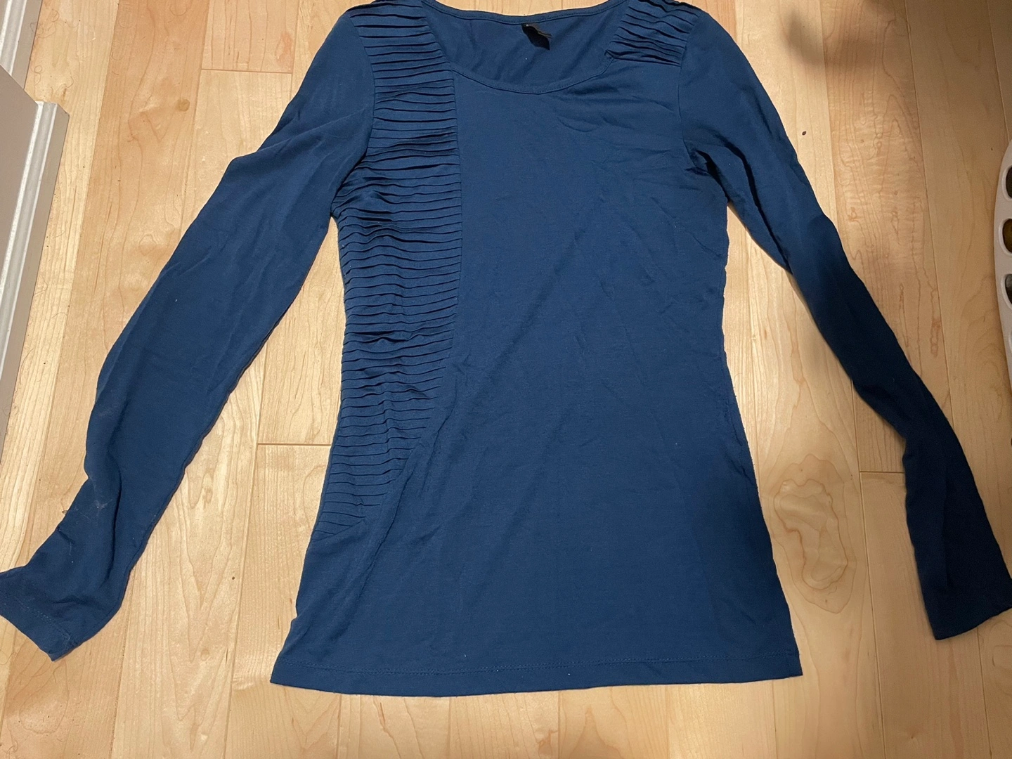 1000+Blue long sleeve shirt with ruched detail on the side. Size small. Cash only please and pick up at keele subway station
