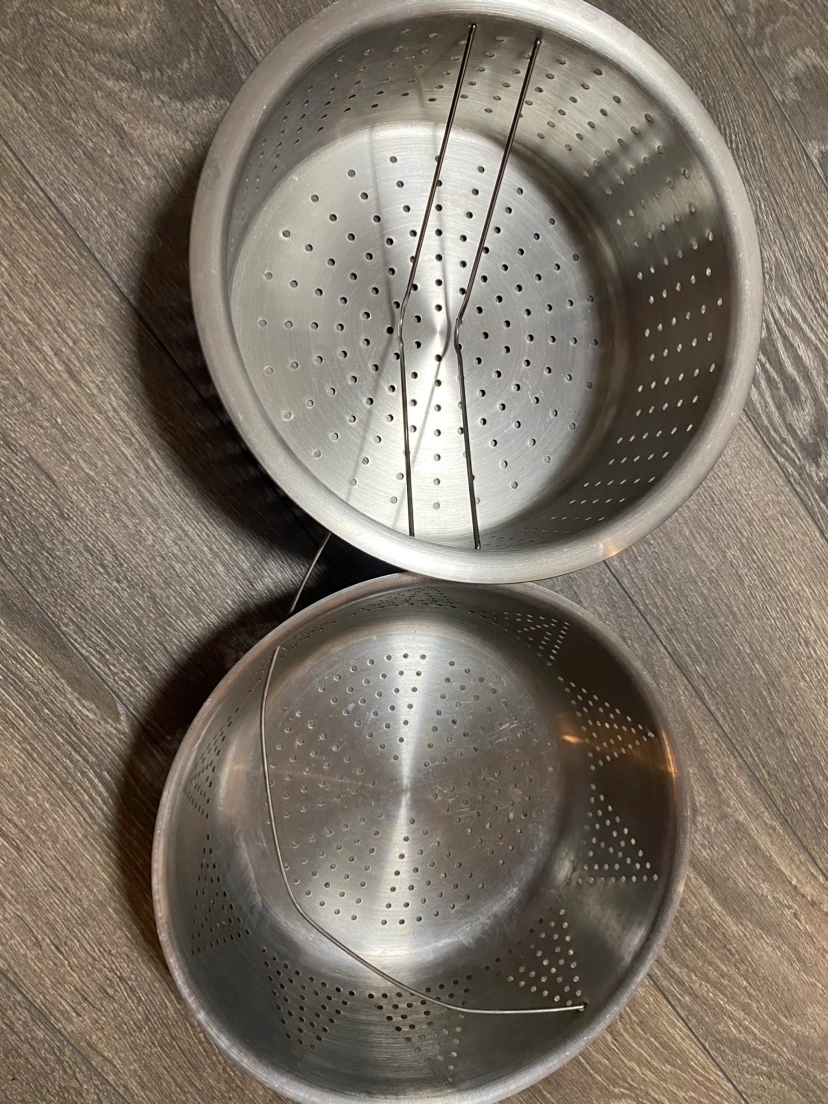 Two piece steamer basket. Includes two perforated bowls with handles. $5 each $8 All Pick up at 111 Elizabeth street