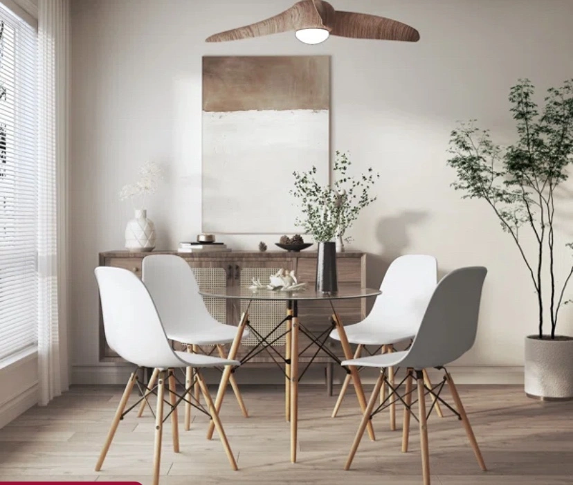 It comes with FOUR chic and comfortable set of chairs and an architecturally inspired dining table.