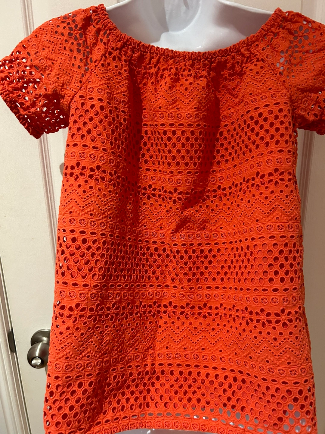 1000+Size Small, Off the shoulder, Short sleeve, Orange, Eyelet design