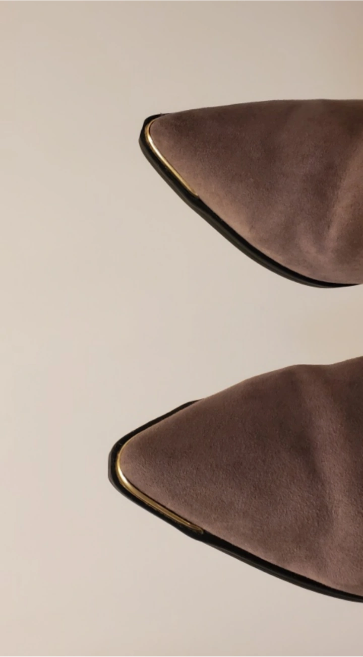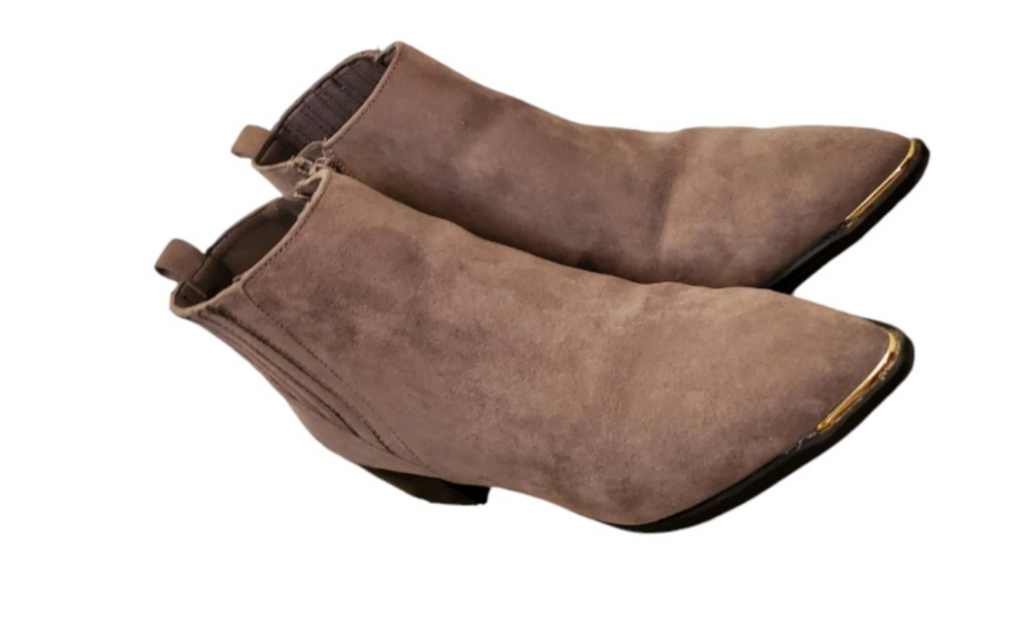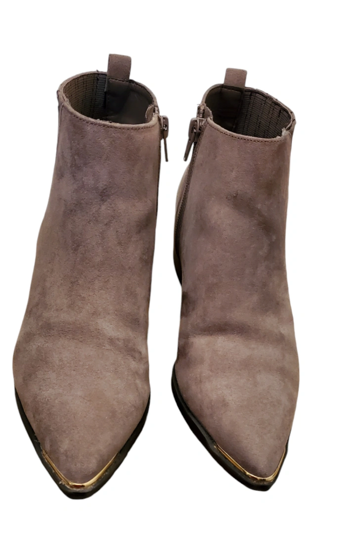 Brown suede booties with gold accents tip. Zip closure on the side. worn twice. Still like new.