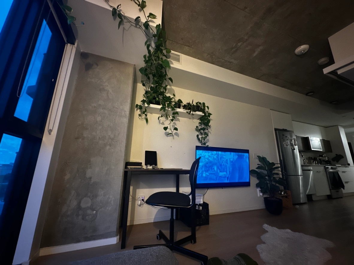 55” TV. Good condition. Has feet, but will need fasteners to attach. Comes with basic wall mount.