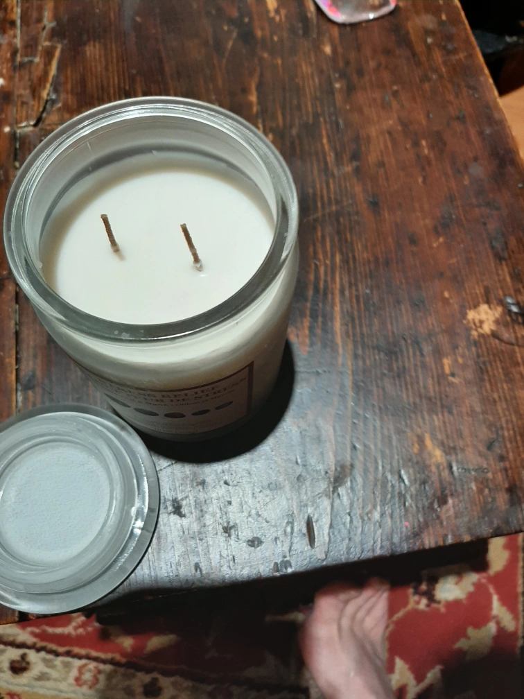 Two wick candle with a glass jar and lid. Scented with frankincense and myrrh. Naturally infused with essential oils. 16 oz (454g)