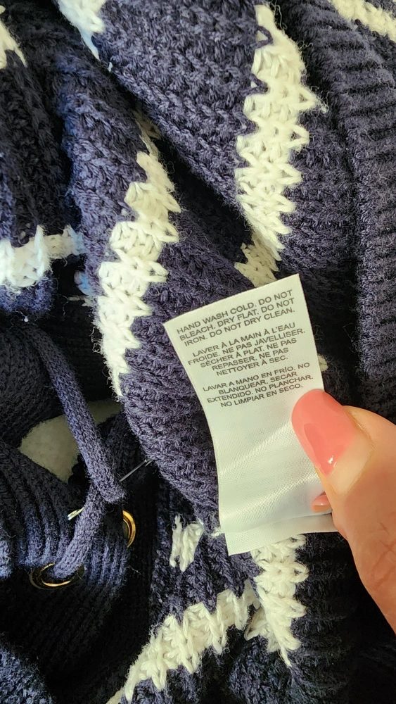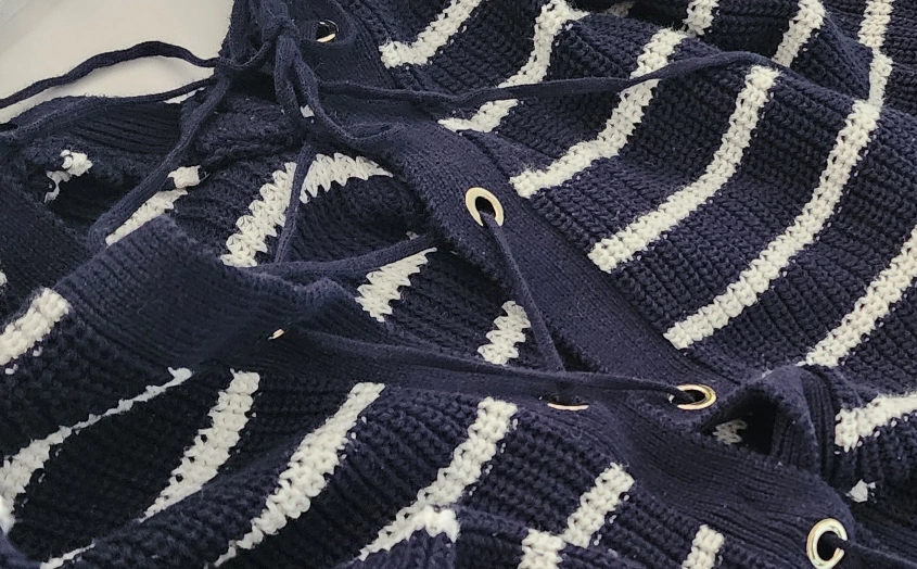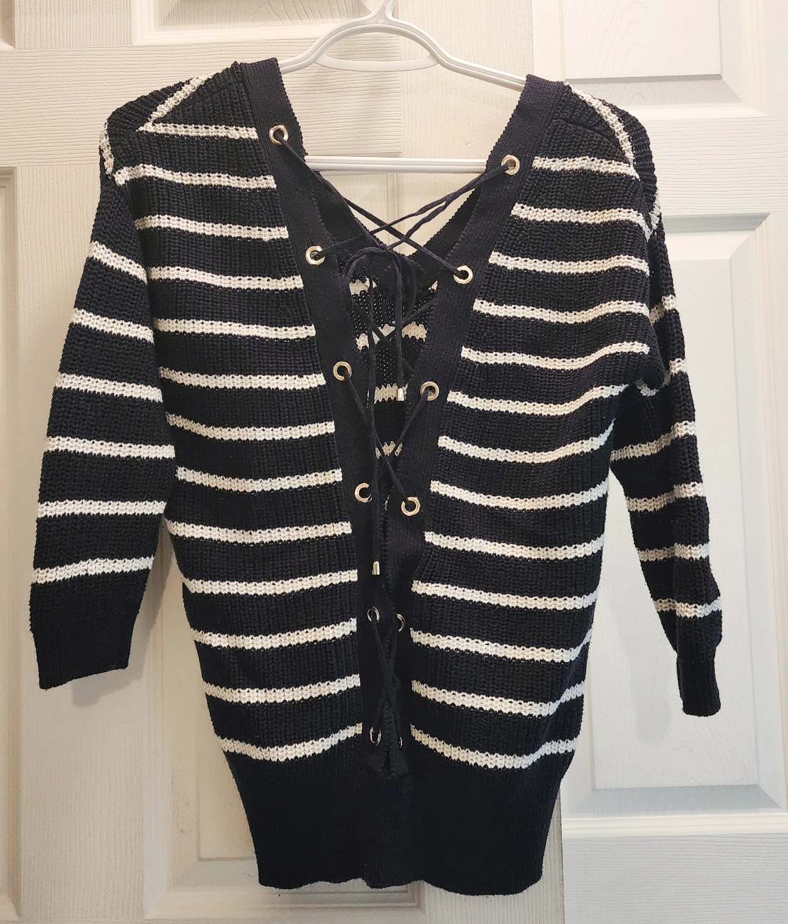 DYNAMITE Striped Cotton Sweater Lace Up Back - Midnight Blue