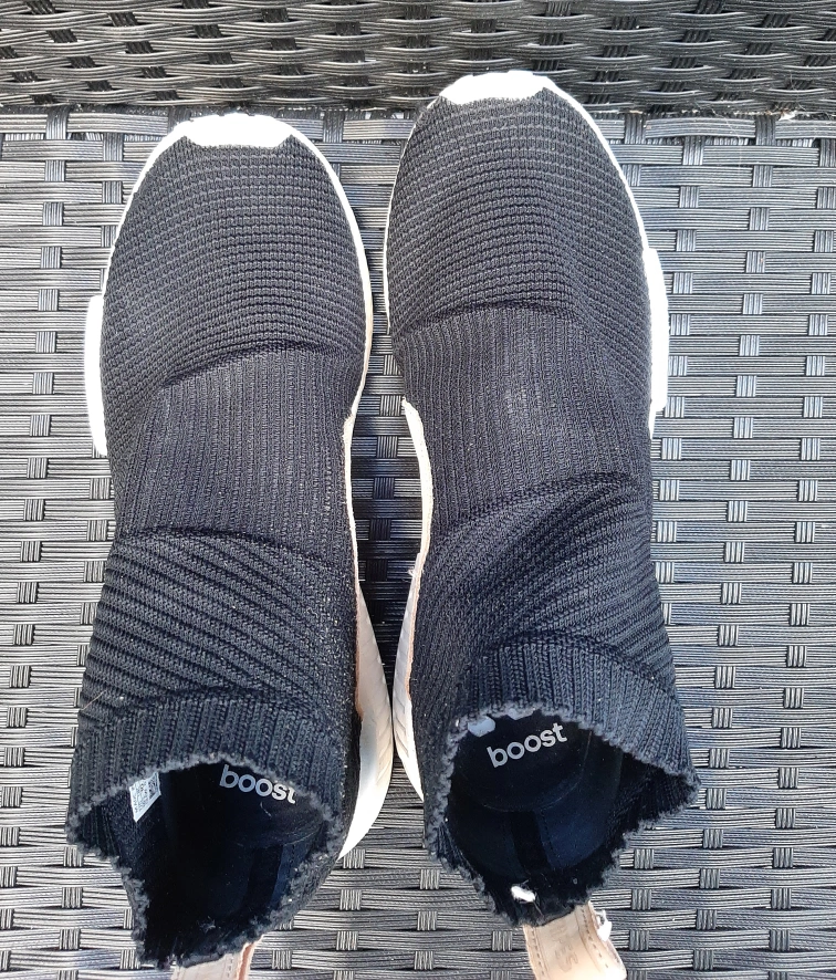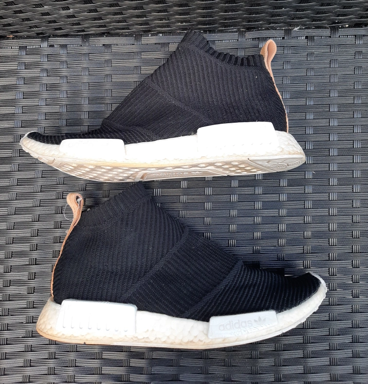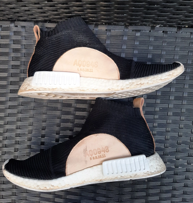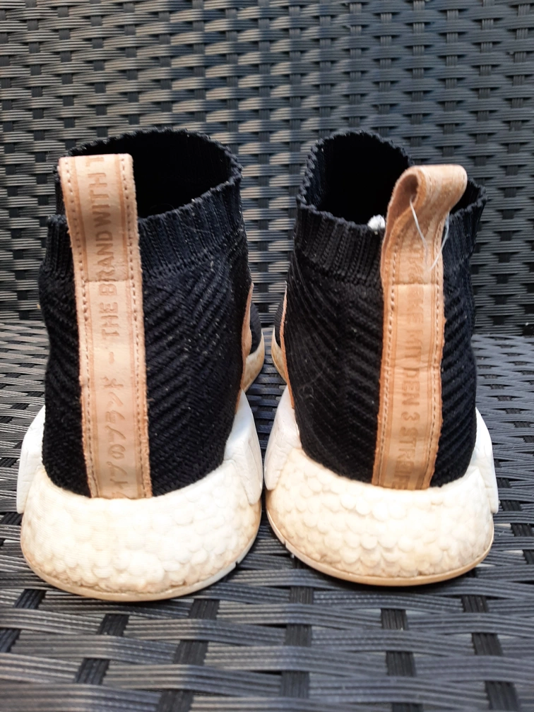 Adidas NMD R1 PK. Black with tan accents. Size 10,5. Boost technology. Style AQ0948