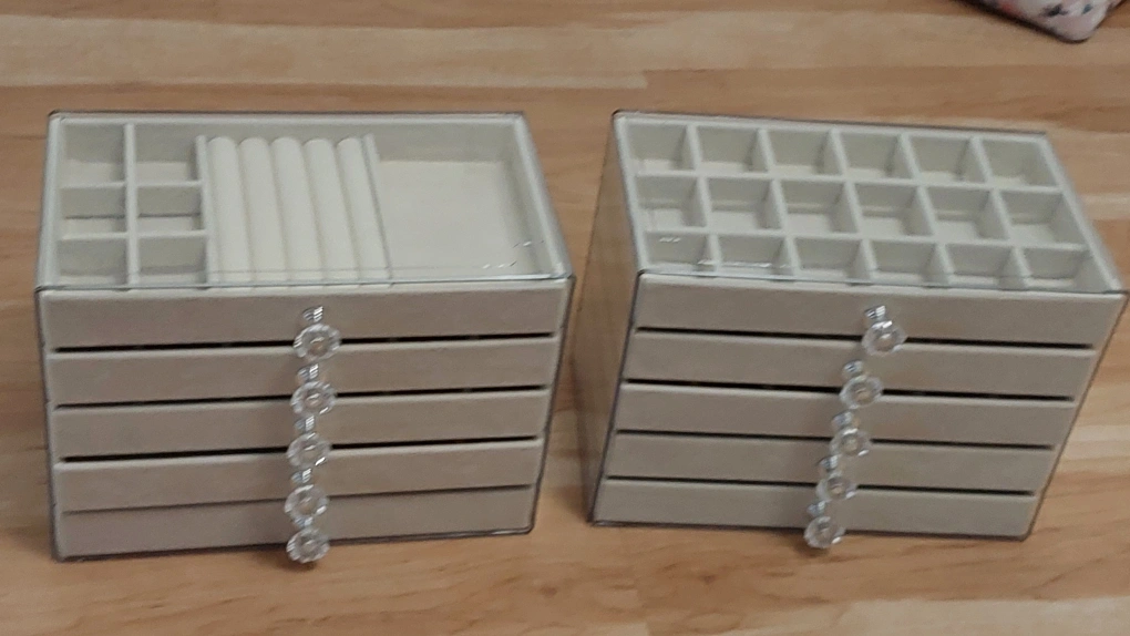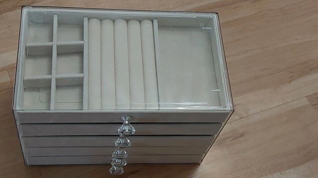 BNIB 5-Tier Jewelry Box with Velvet Lining and Crystal Handles