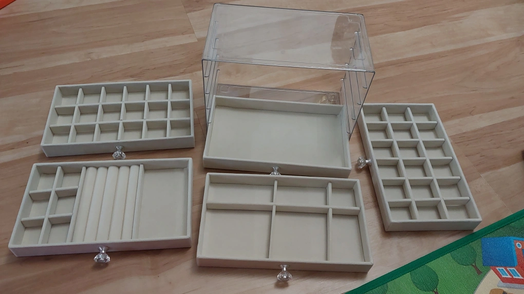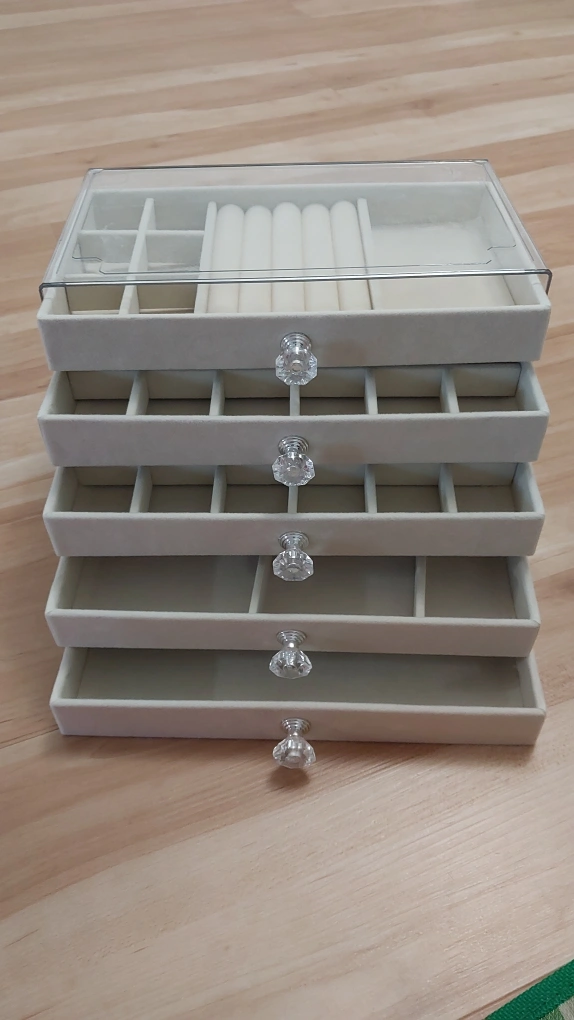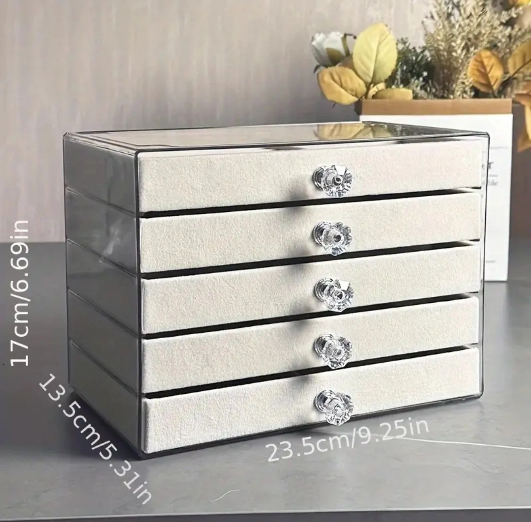 BNIB Classic 5-Tier Jewelry Box with Velvet Lining and Crystal Handles, Tabletop Organizer for Rings, Necklaces, Earrings, Bracelets Multipurpose Storage- Polished Transparent Storage Case Dustproof Display Cabinet