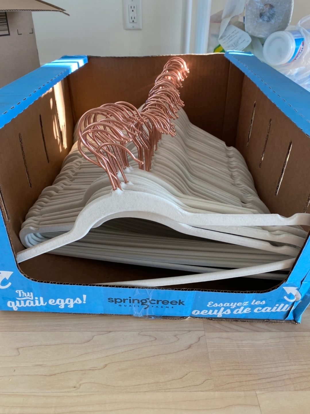 100 velvet hangers. Got them way more expensive at Marshall's, but same as amazon. Amazon price is $56 plus tax. 6 months of use. Immediate pickup.