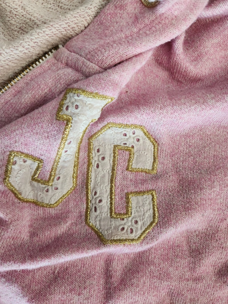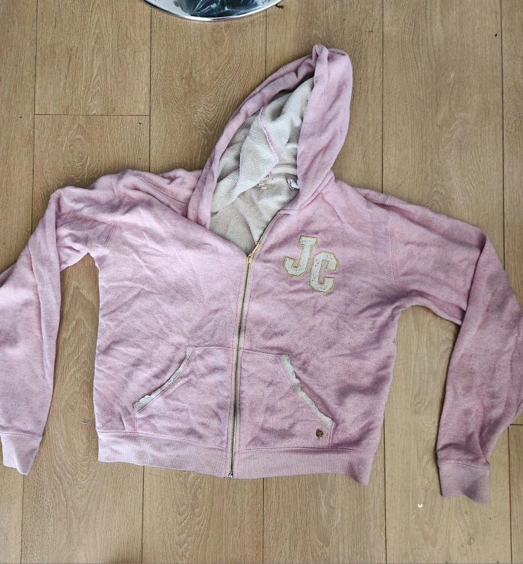 Vintage Y2K Juicy Couture Pink zip up hoodie with gold embroidery and a hood. Size Medium. 71% Cotton and 19% Polyester.