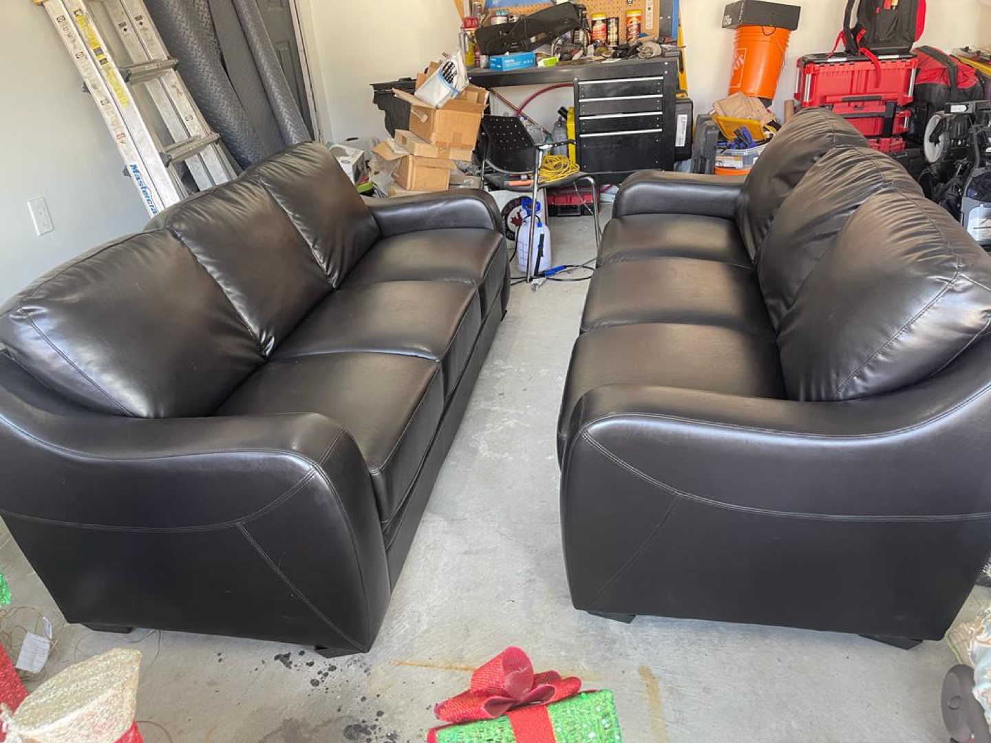 Both for $500, no individual pricing. Light brown leather-look sofas In good condition, basically never used. These were always covered by blankets so the cushions are in great condition and they were rarely ever used so the cushions are in great shape.
