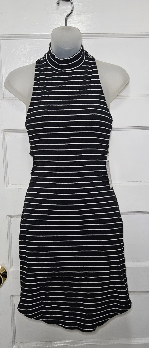 Express Black and white striped Bodycon Mock Neck Cutout Size S