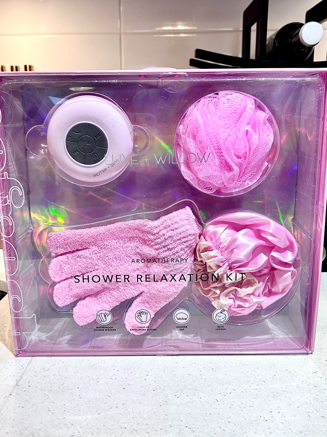 Brand new! LUXE & WILLOW Shower Relaxation Gift Set Kit w/ Bluetooth Speaker! REG $90 USD