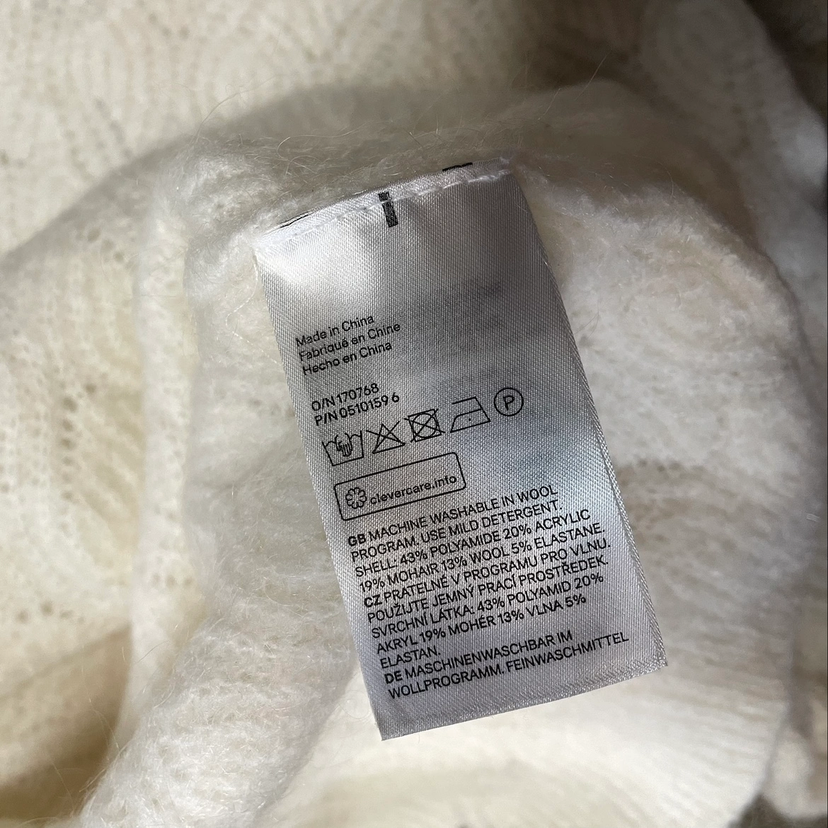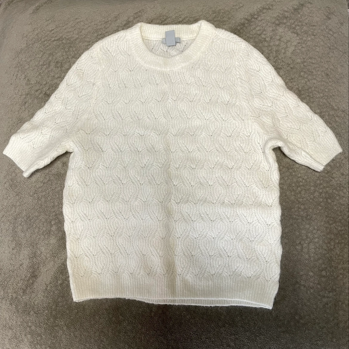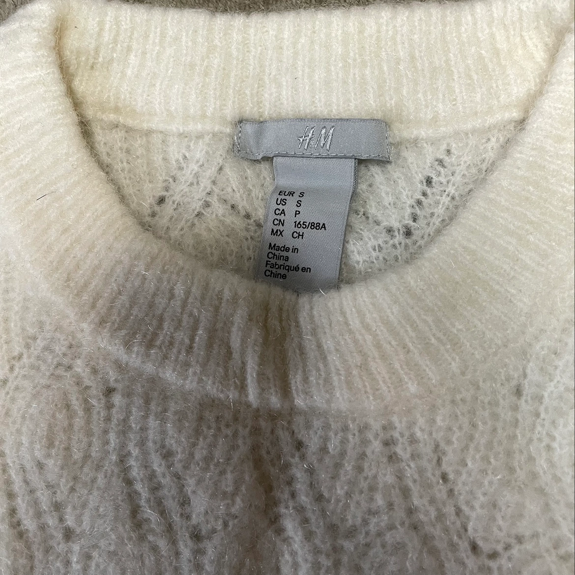 H&M Crew Neck Fall Sweater Ivory Wavy Eyelet