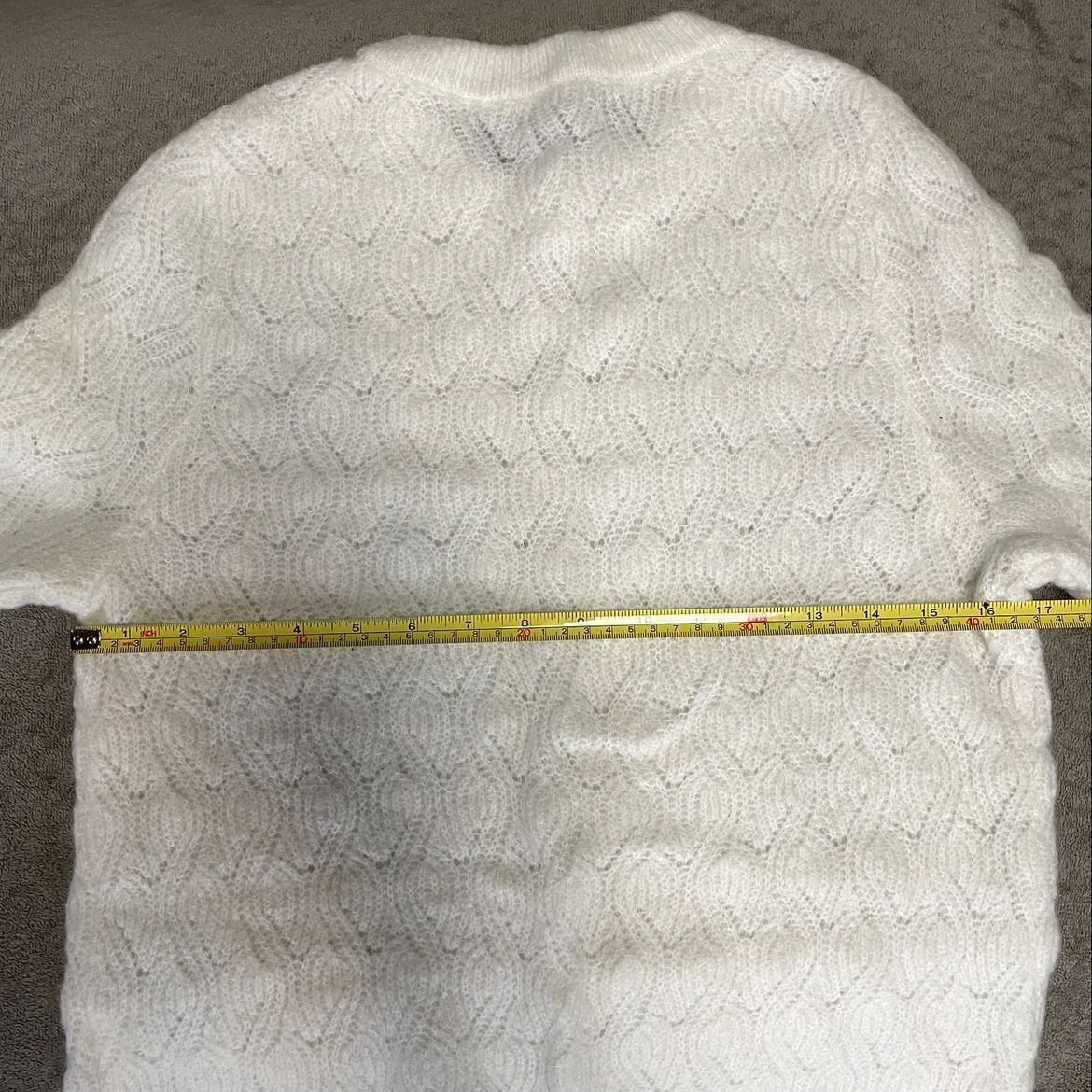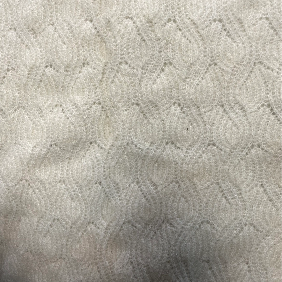 Worn only once in great condition. Beautiful wavy eyelet pattern all over. Wear as it is or over a bell sleeve shirt for a warm yet stylist look. From a pet and smoke free home.
