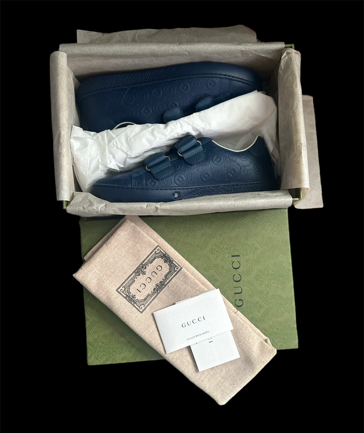🔥SALE! $350!🔥Gucci Kids' Blue Leather Sneakers