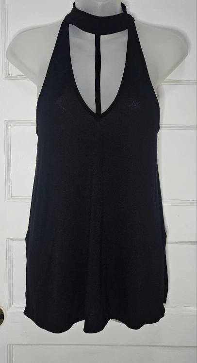 Express Black Mock Neck Tank Top w/Chest Strap Detail Sz S