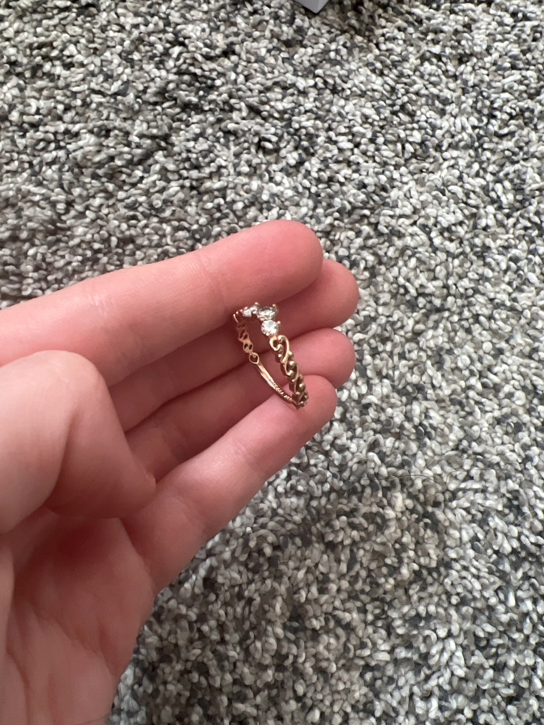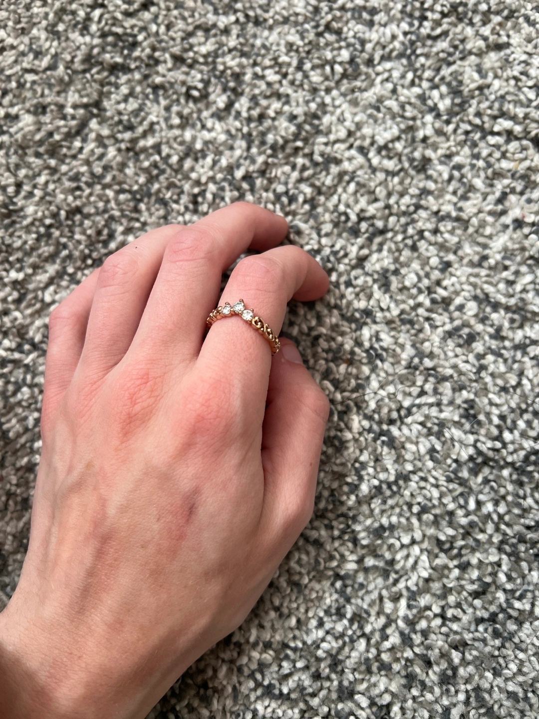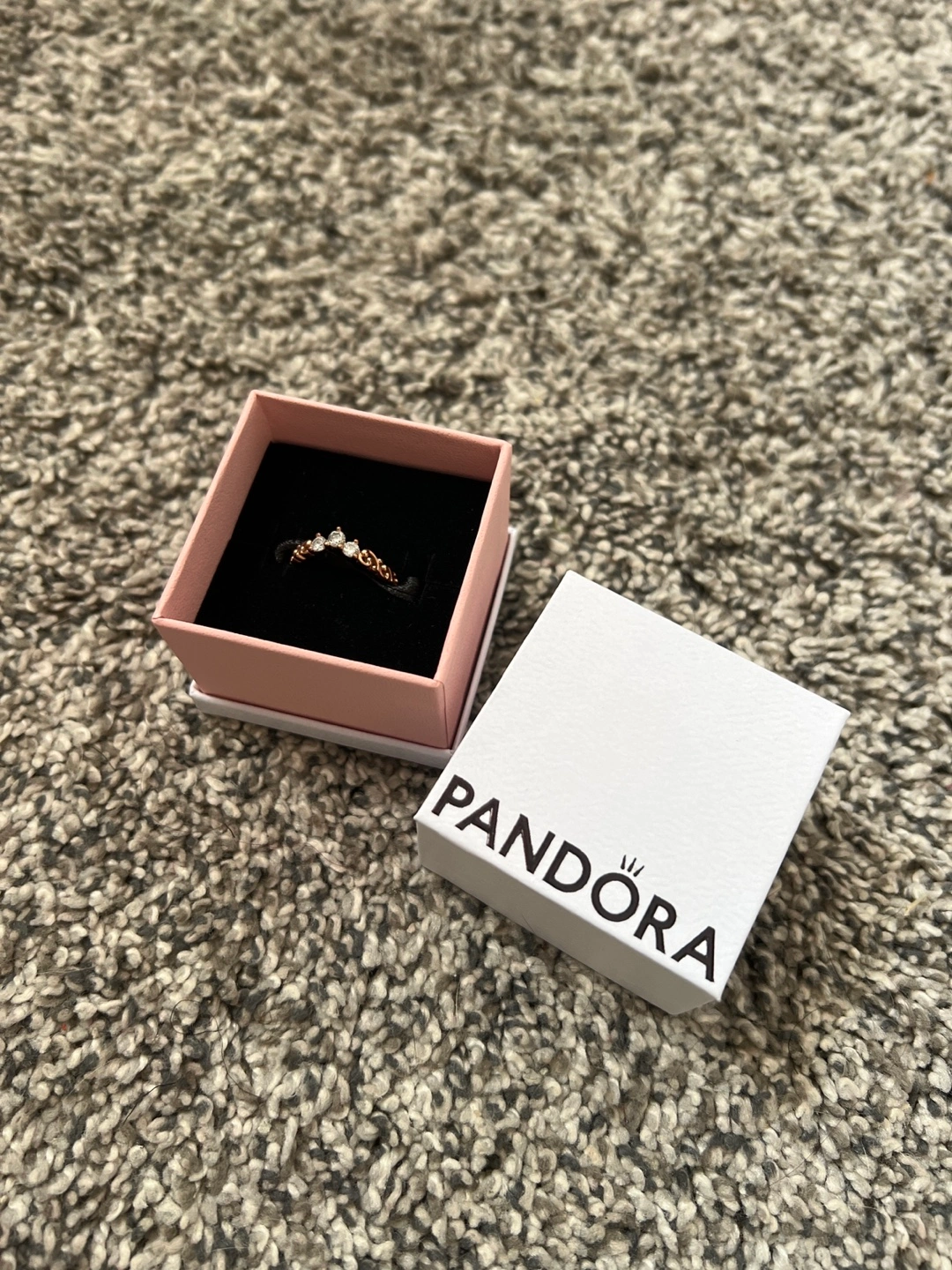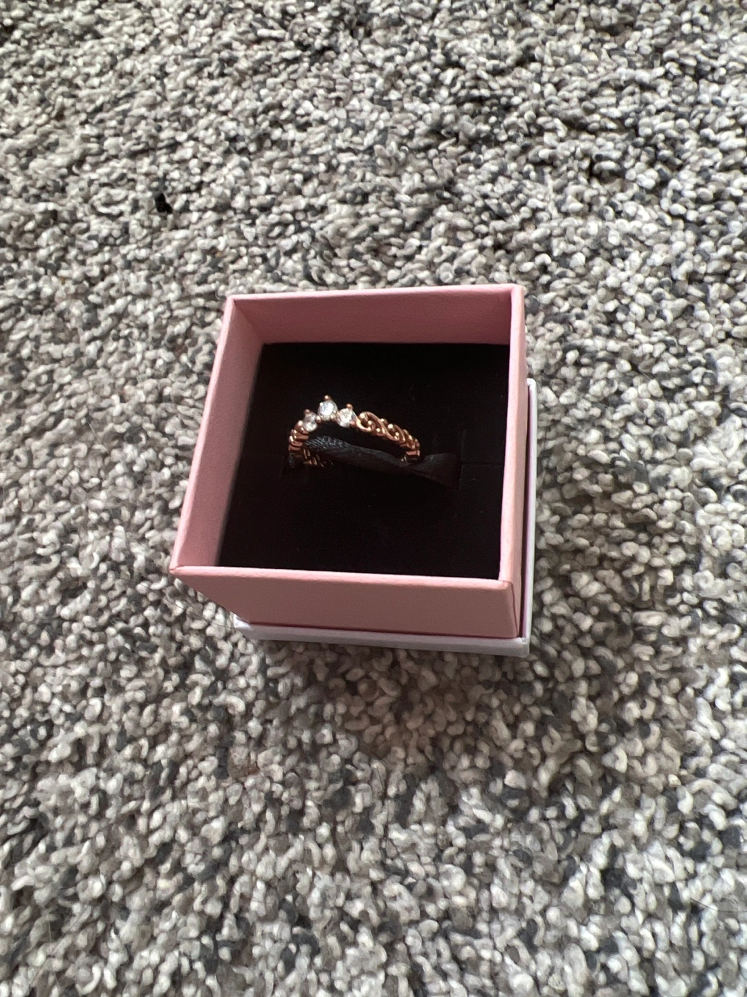 65Rose gold ring with stones. Comes in Pandora box. In good condition basically looks new just a little tarnish but barely noticeable. Bought from Pandora for $150