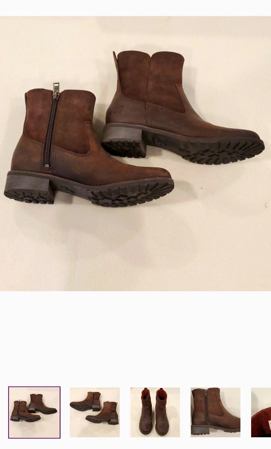 Timberland brown leather and suede upper boots with zipper closure and small heel. Size 6.5.