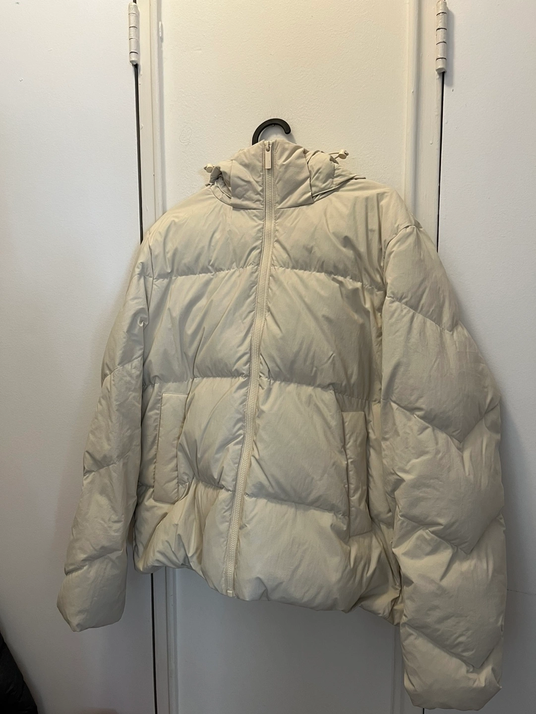 Puffer jacket with a hood. Size 34 which is about a medium