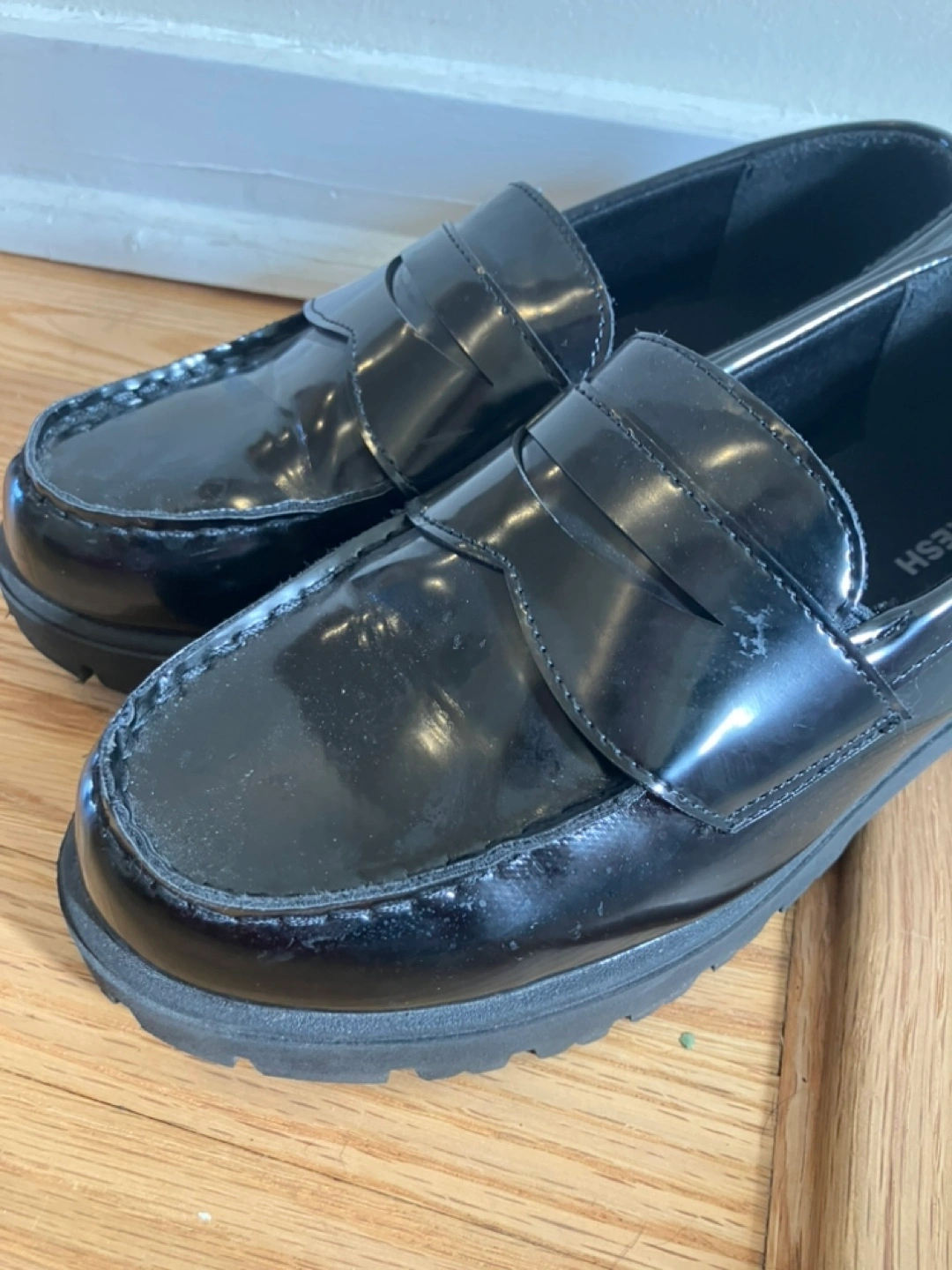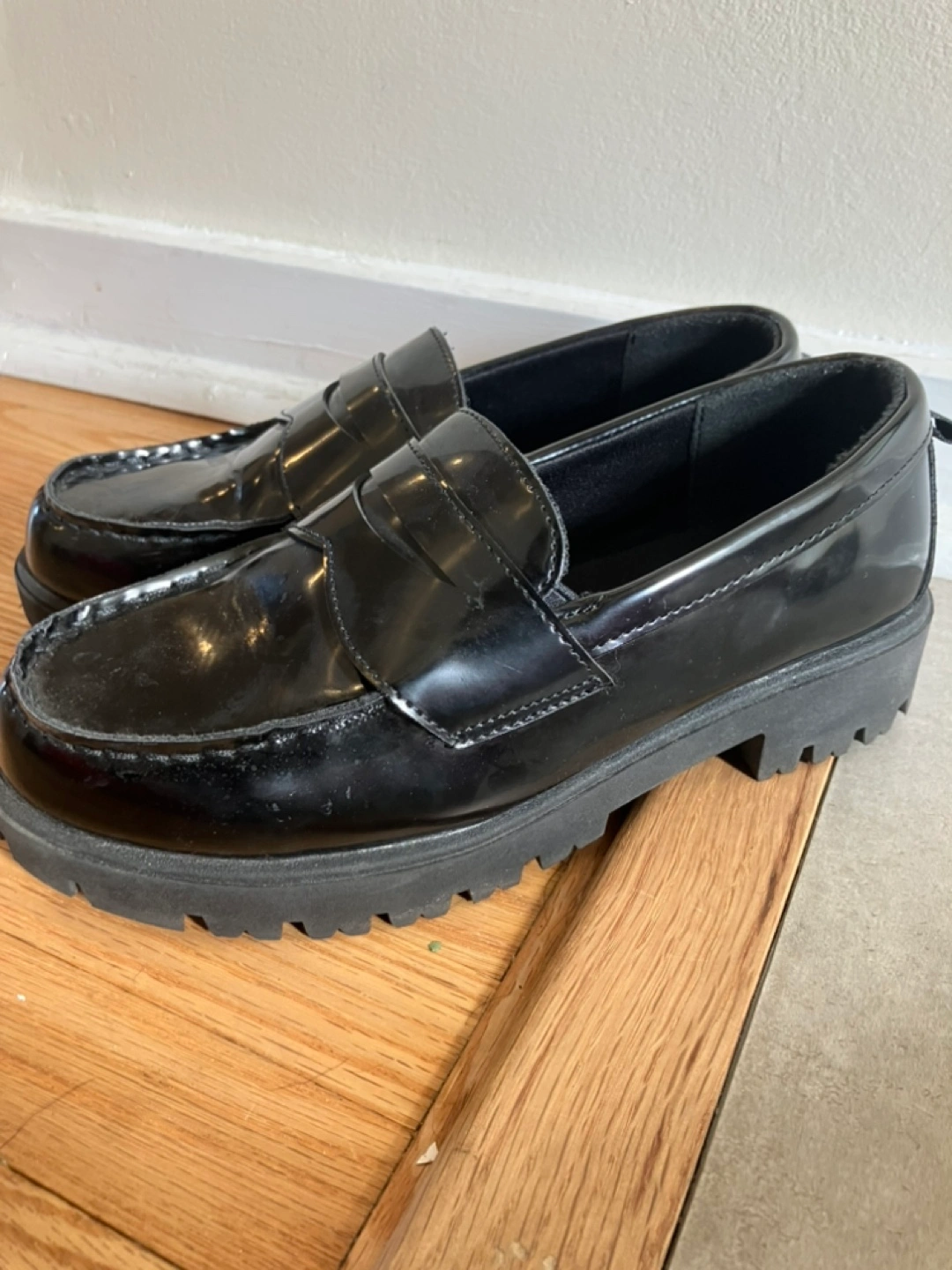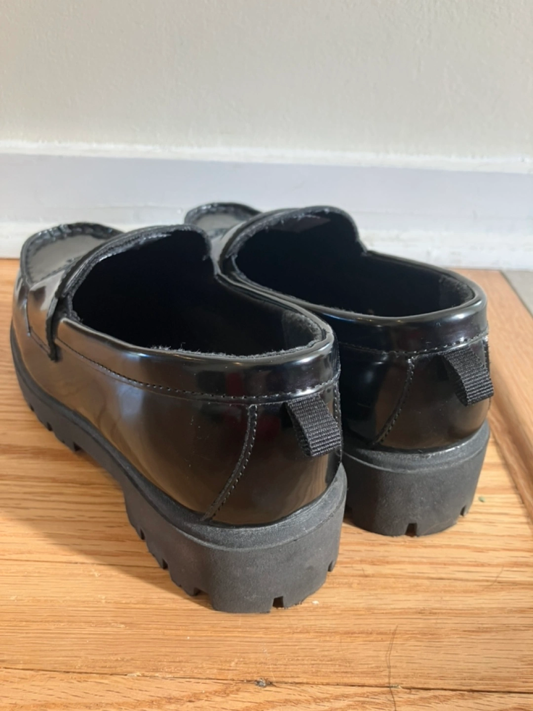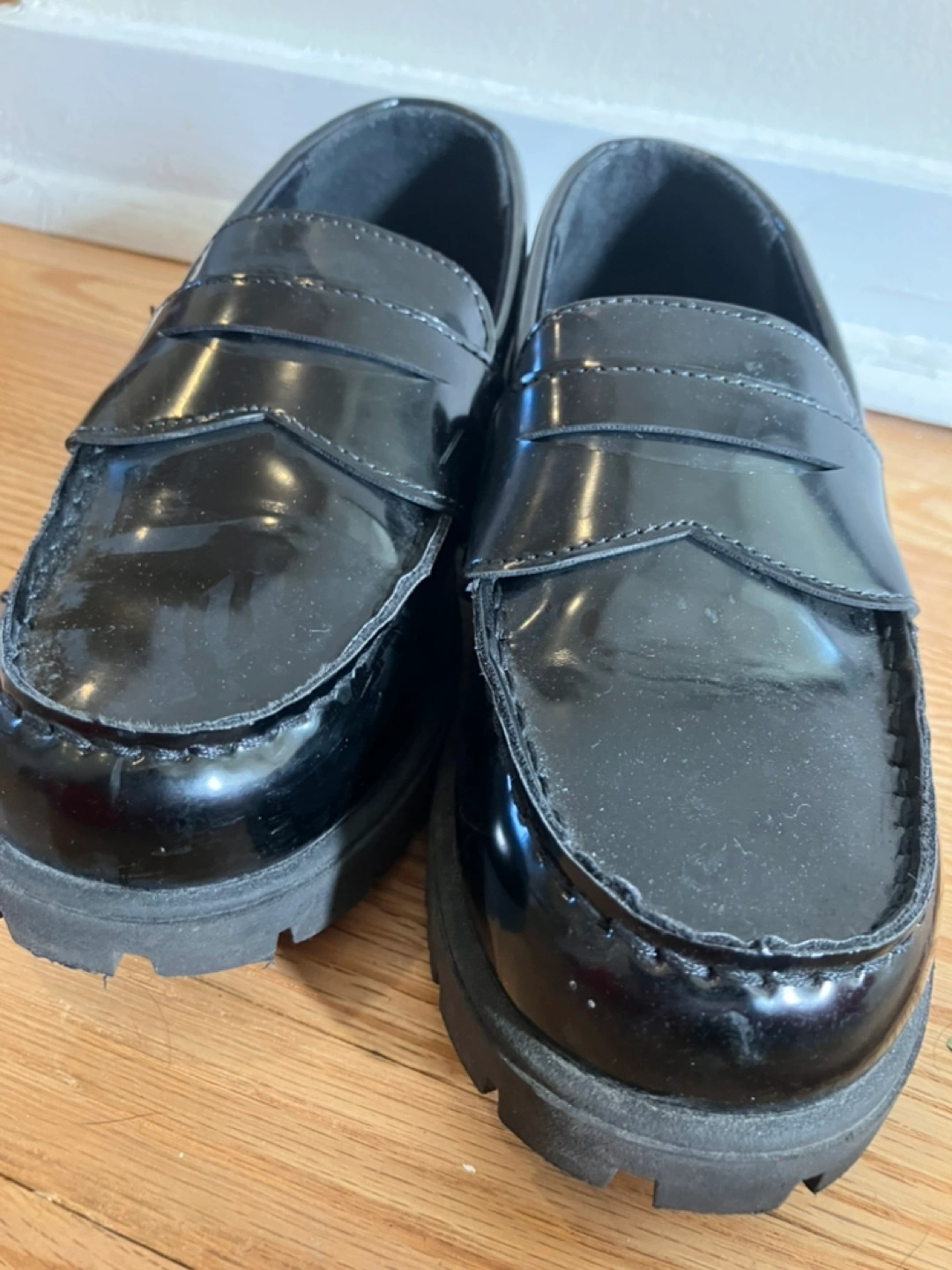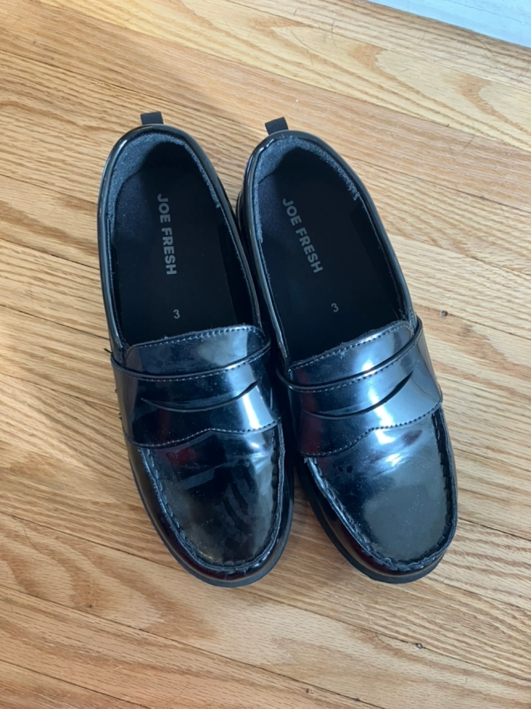 133Only worn a handful of times. Perfect for any special occasions coming up! Brand Joe Fresh Size 3 Colour Shiny Black Very cute girl’s loafers. Goes well with a dress or wide leg pants. Slight chunky heel. WASY PORCH PICKUP AVAILABLE