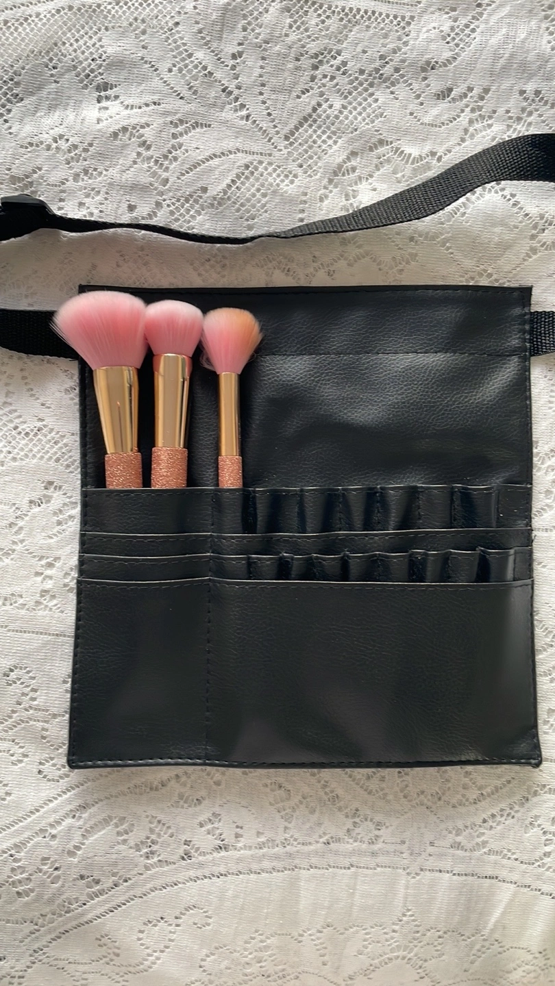 β’ Adjustable strap allows for the belt to be comfortably worn around the waist or over the shoulder, for an easy access to the brushes while makeup