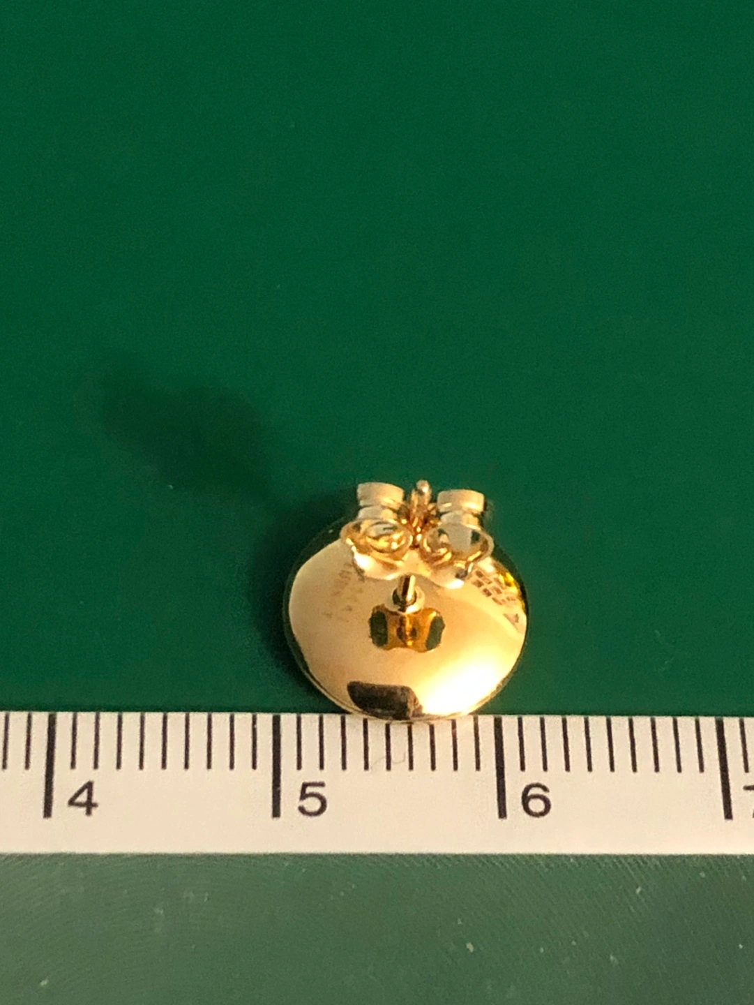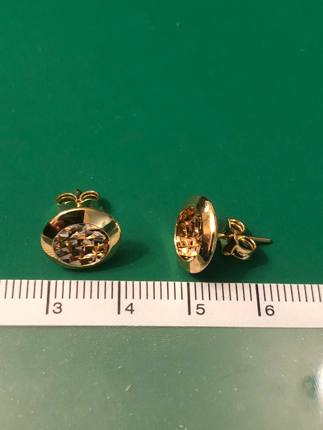 5414K. Yellow Gold and white round diamond cut earrings. Measures approximately 1/2 inch in diameter. Post back closures. 20% off today only! Aug. 19,2025