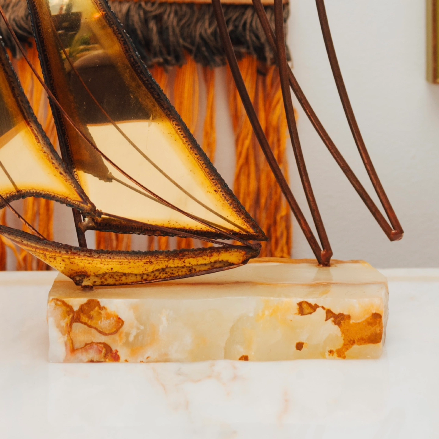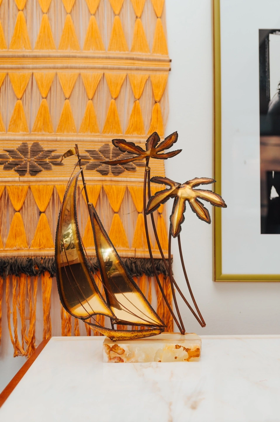 MIDCENTURY Vintage Decor 🤎 Onyx/Brass Palm + Sail