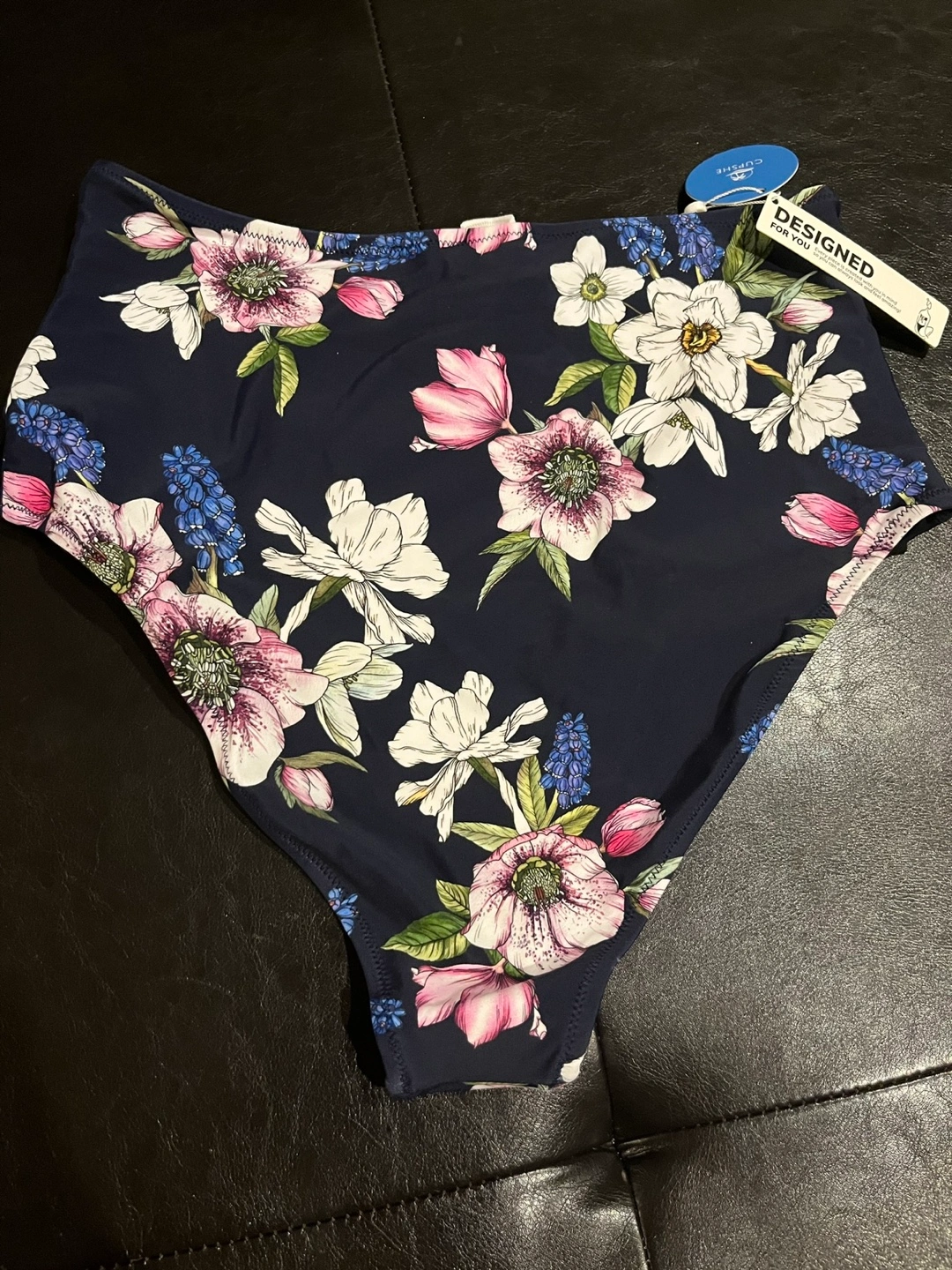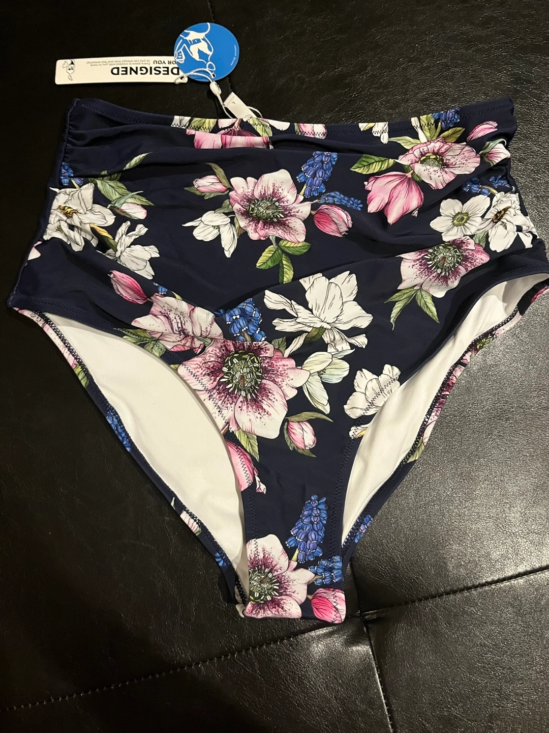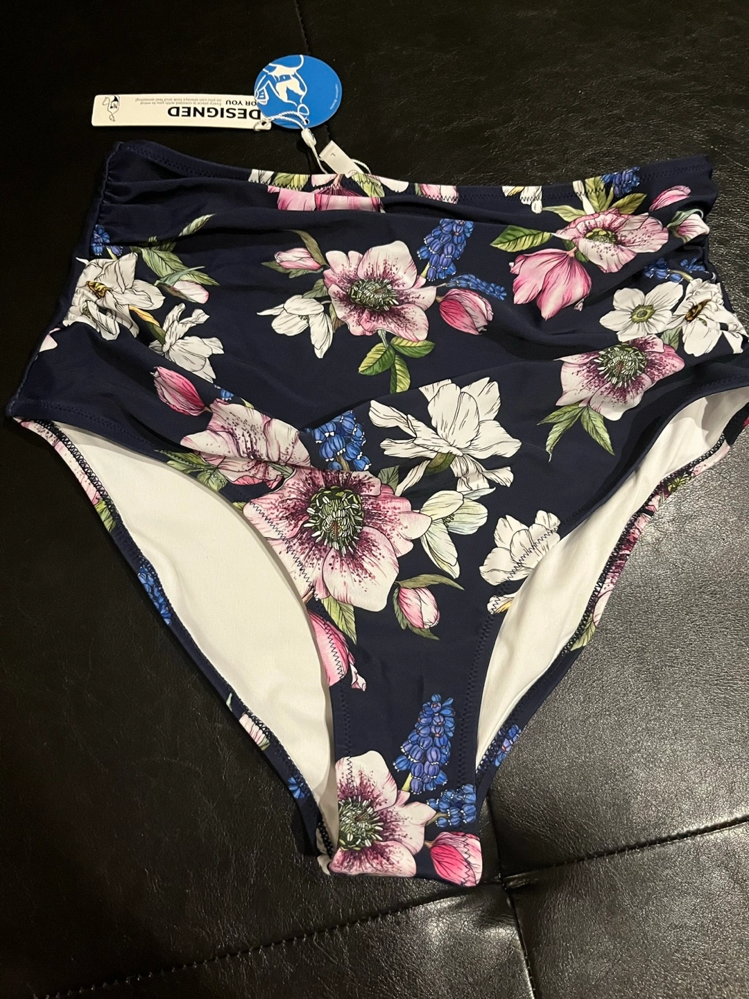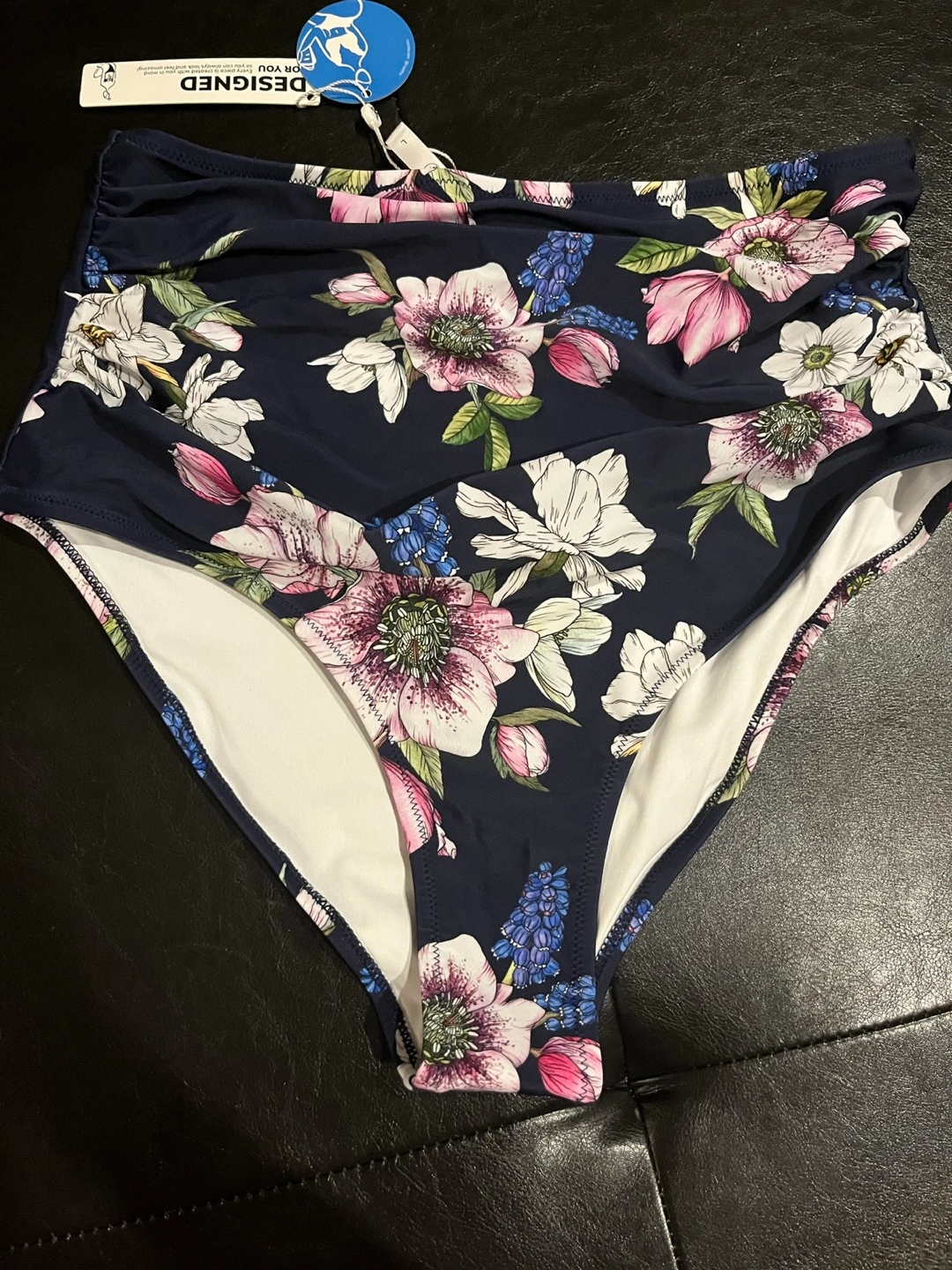 184New with tags, high waisted swim bottoms with a floral pattern. Size medium. Navy Floral Shirring High Waisted Bikini Bottom - NWT - large Bought this online and ordered the wrong size, and it costs too much to ship it back. Fits true to size: Waist 30.5-32.5 inches, Hips: 39.5 - 41.5 inches This is brand new, ladies high waisted bikini bottom ladies LARGE great for tummy coverage and if you get get a navy top, this would look great! Brand new and the price is firm. All my items are from a smoke free home. If my ADS are up, it’s for sale still Prompt pick up please Local Sales preferred, but will ship at buyer’s expense Buyer responsible for Pickup NW Final Sales, no returns or refunds Cash or EMT only